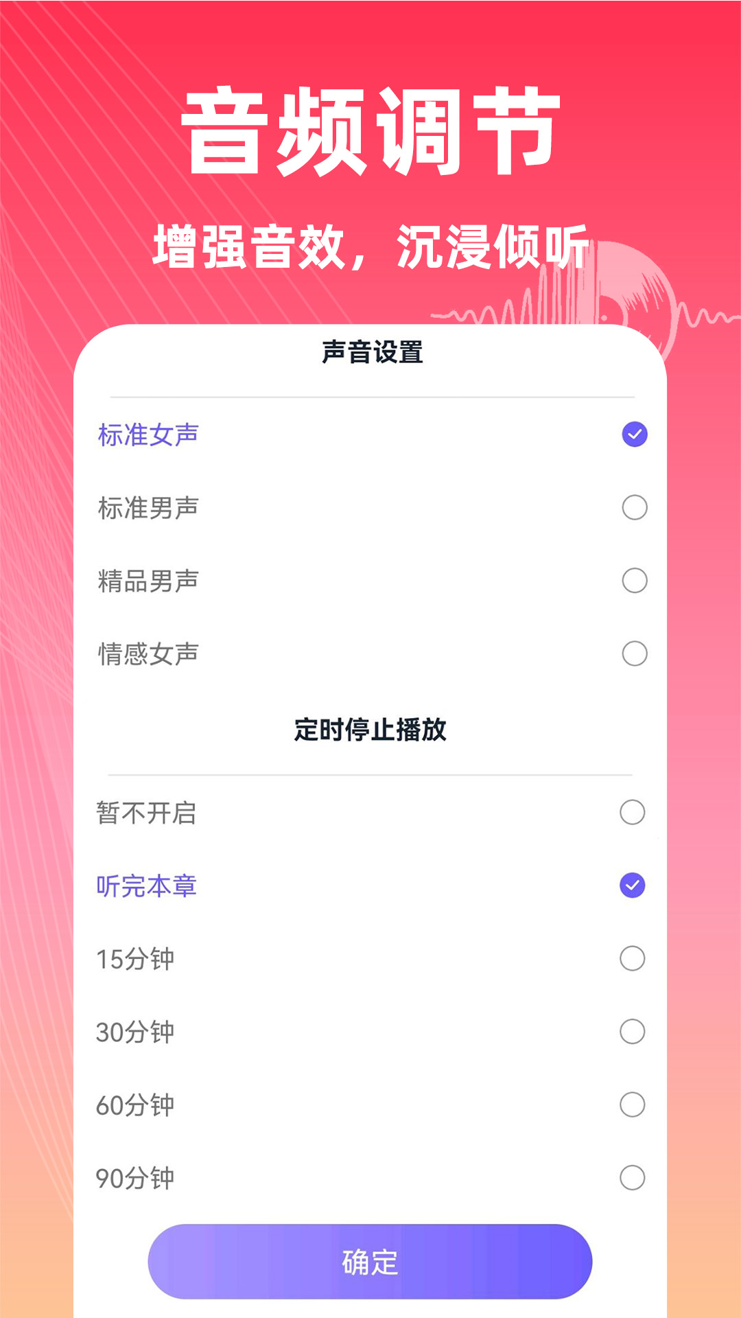 -页面简单功能齐全,支持调节语速设置音效,随意选择自己喜欢的收听方式!
