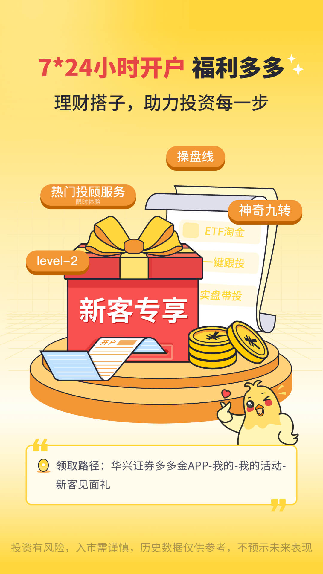 在这里,开户十分便捷,7 * 24小时随时为您开启投资之旅,而且福利满满等您来享。