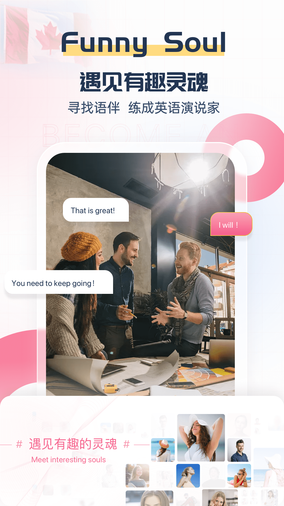 该APP已经上线诸多功能,如图文Vlog分享、电影双语台词学习、新闻频道、语伴与纯英社交、每日背单词学语法、各场景英语精品快学课程、创业者中心等。