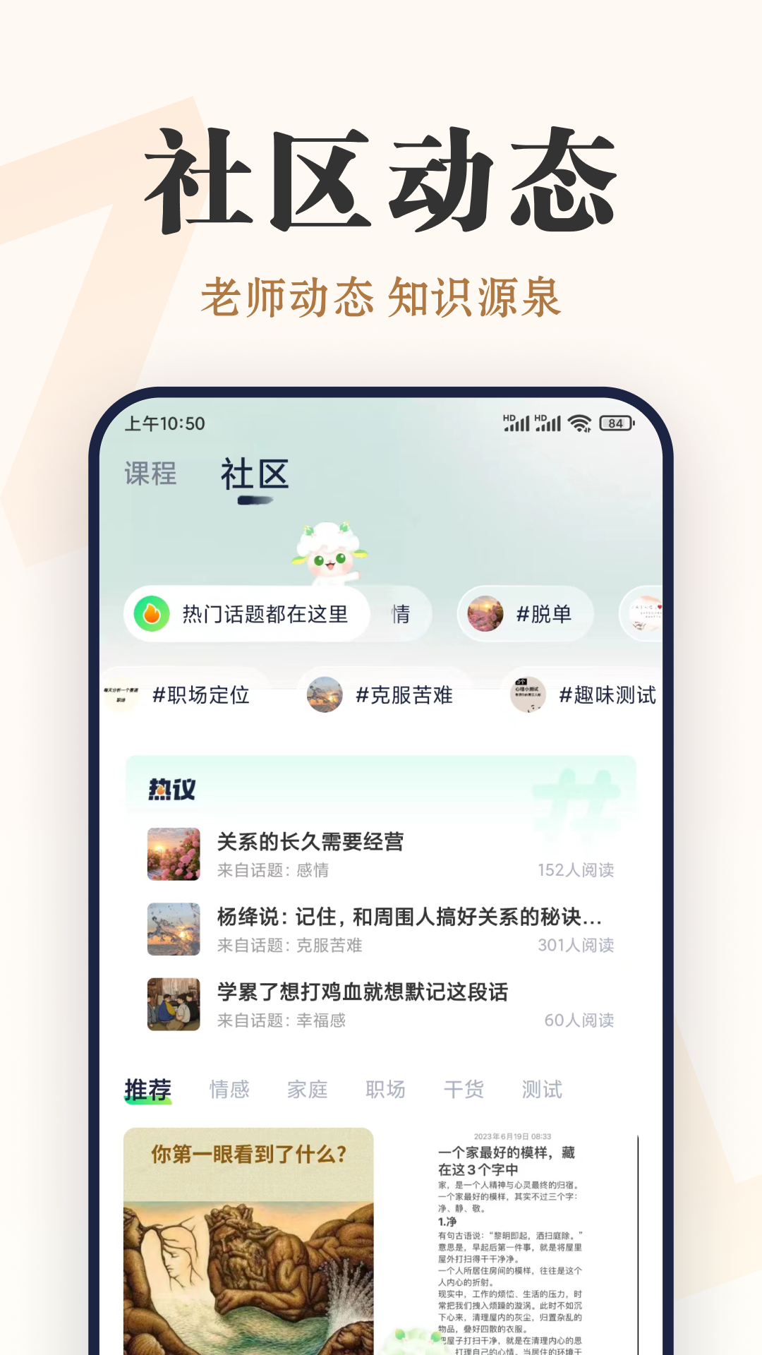 我们以优质内容作为核心产品,在此基础上,为用户免费提供专业的心理测评、高质量的课程以及令人满意的咨询服务。