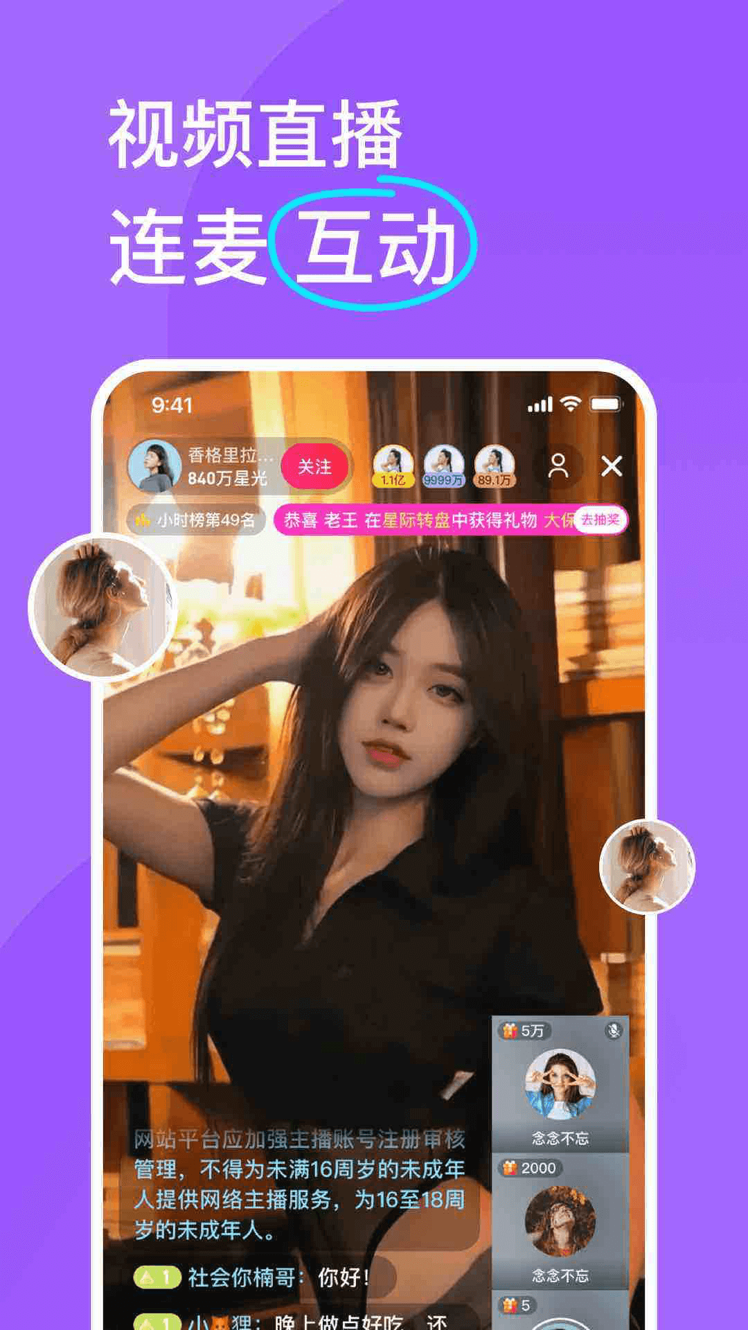 星曜直播,高颜主播直播交友平台!在线与心仪主播亲密互动,主播PK新式玩法不断,更有丰厚福利等你来拿! 直播、聊天、交友、游戏;高颜值主播、用户在星曜和你实时互动,你和Ta从未如此靠近!和好看的人在星曜不期而遇!
