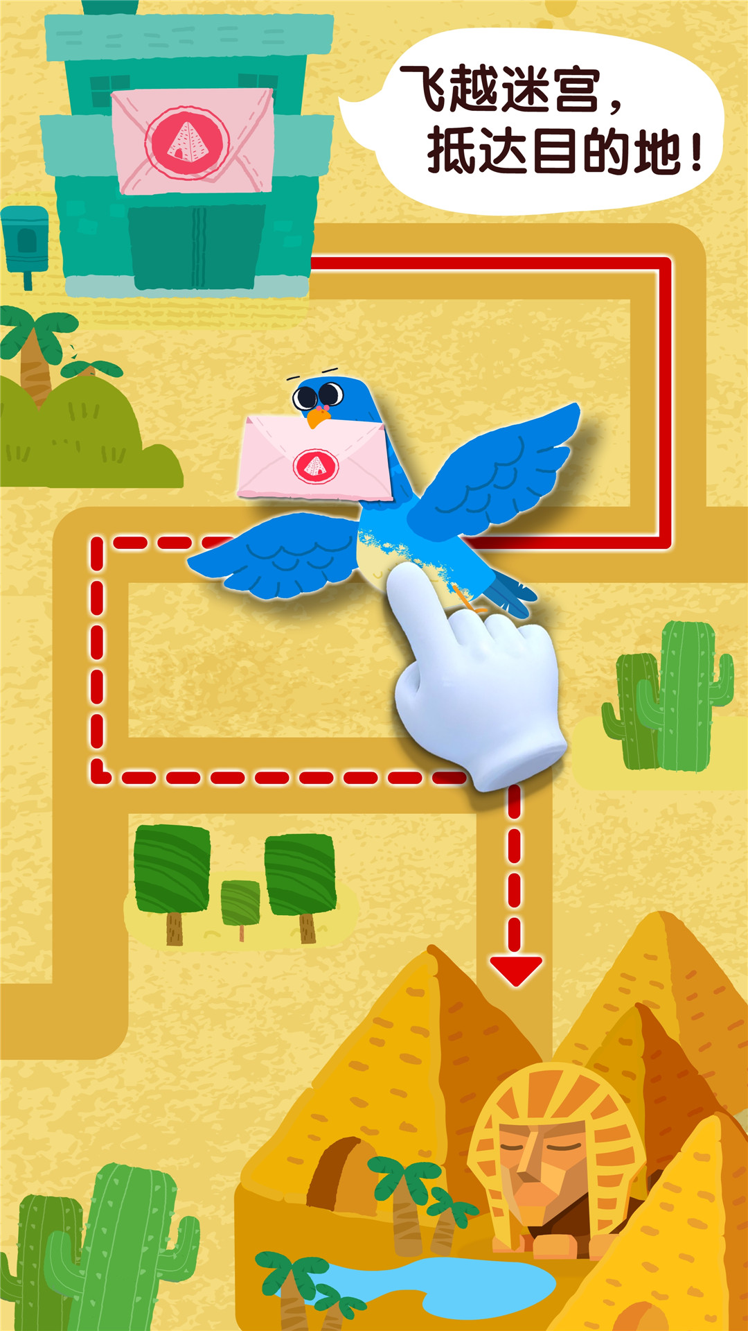 慢慢地,鸟宝宝长大啦。现在鸟宝宝要开始担负起工作啦。宝宝要引导鸽子在迷宫里飞行,让鸽子顺利地把信送到收信人的手中哦。