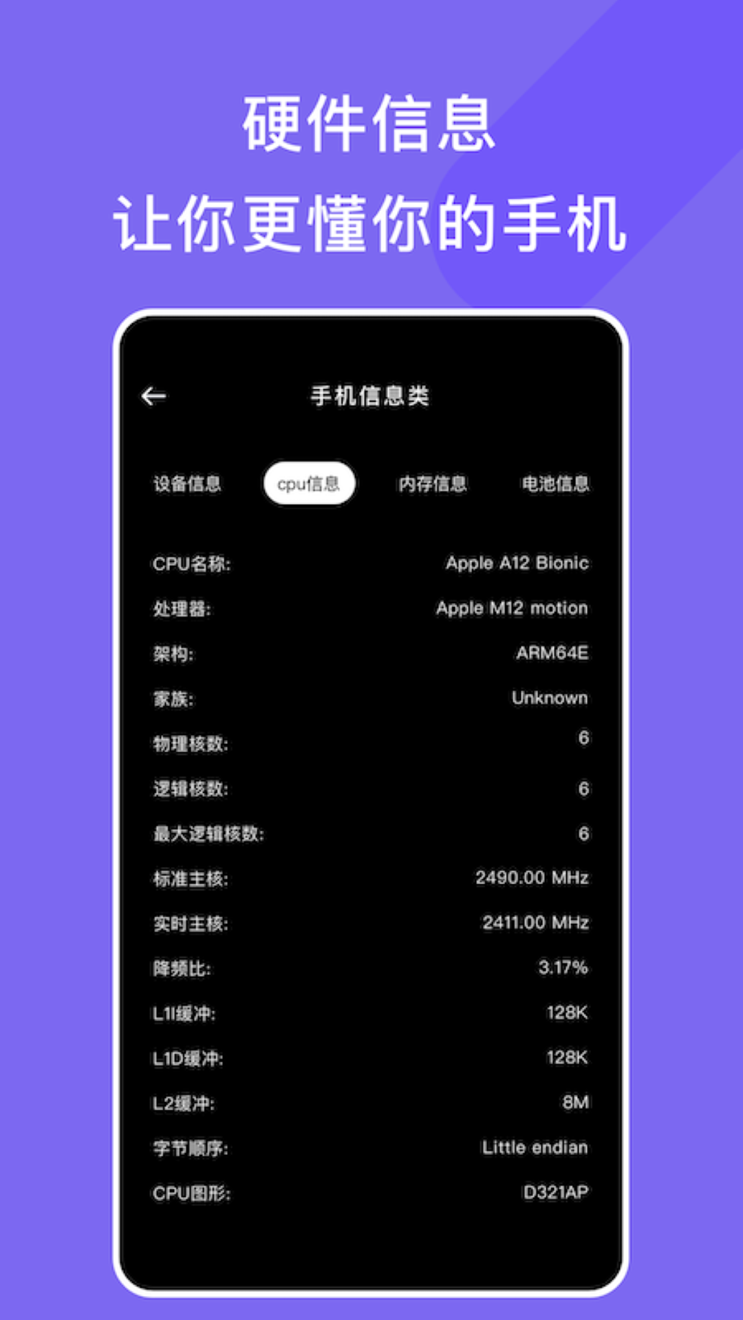 【基本信息】它可以显示手机的型号、屏幕分辨率、尺寸以及像素密度等信息。