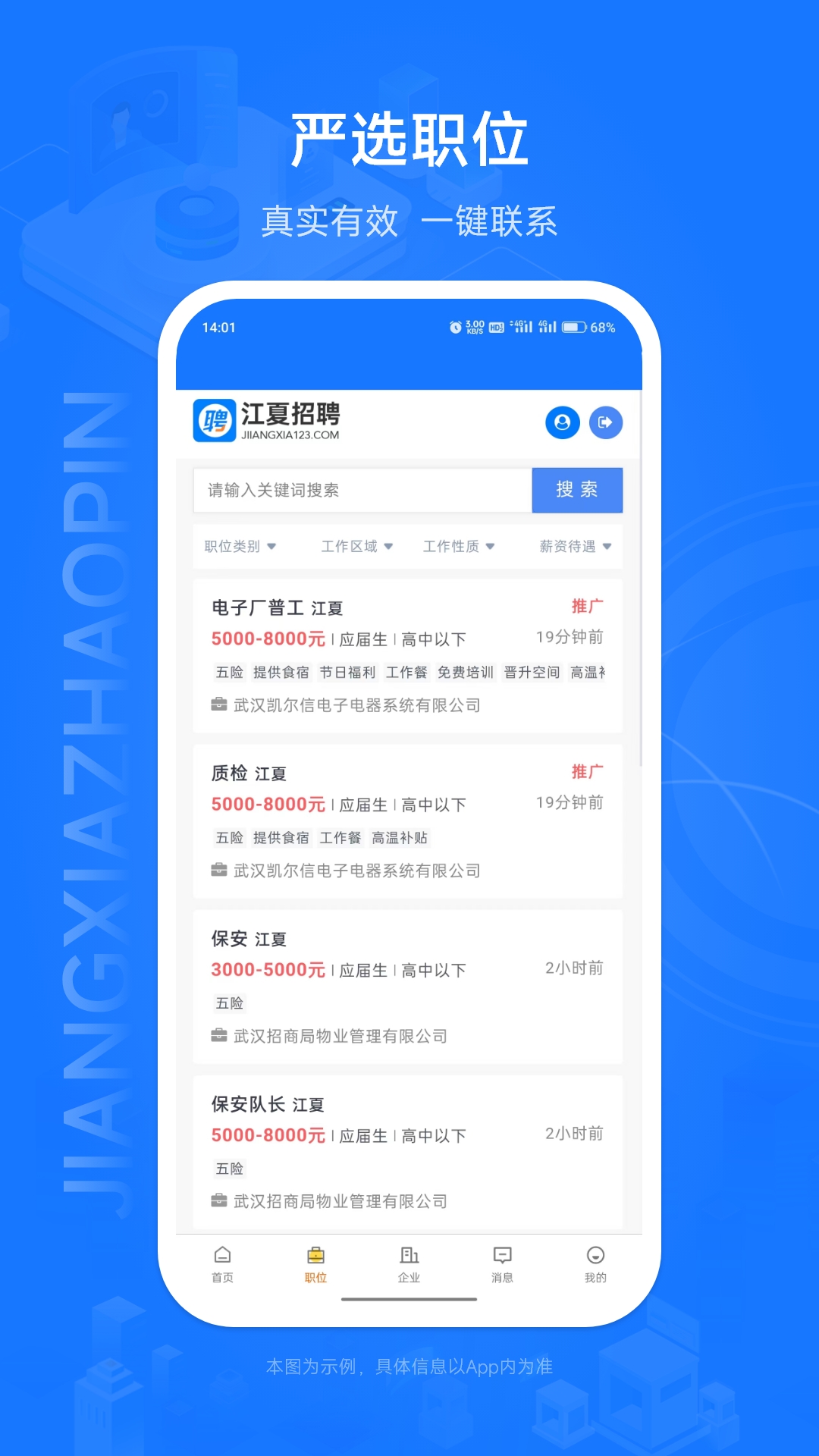 江夏招聘网,作为立足武汉本土的专业招聘平台,所提供的招聘信息真实且有效。它致力于助力企业轻松便捷地招募人才,同时让求职者能够毫不费力地寻得江夏本地的工作岗位。该平台能够精准地对岗位需求进行匹配,迅速构建起企业与人才之间沟通的桥梁,进而为江夏地区的人才招聘工作提供高效、值得信赖的服务。