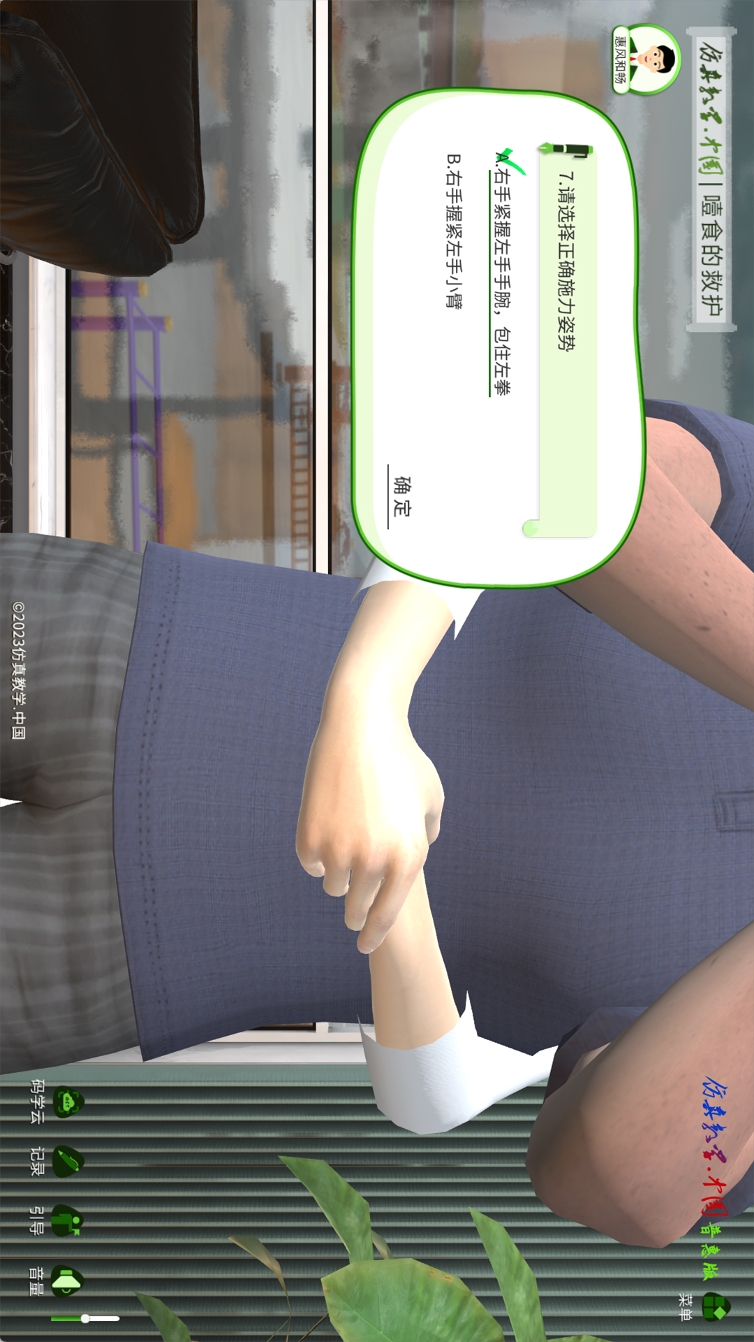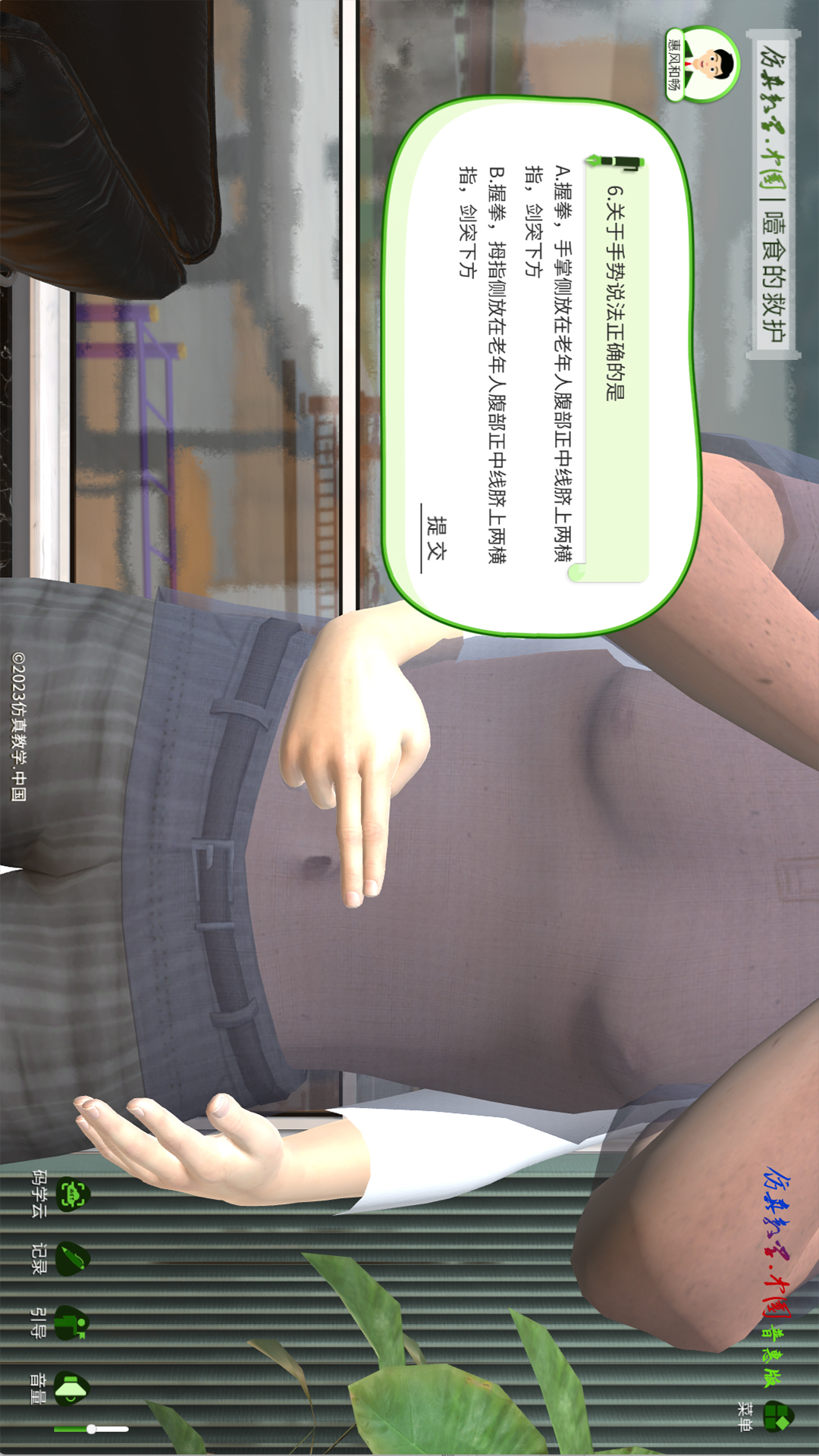 噎食的救护虚拟实训教学软件,该软件需通过仿真教学.中国账号登录使用。仿真教学.中国为中文域名。我们正在积极行动,致力于让“做中学”这种学习模式能够随时随地实现。