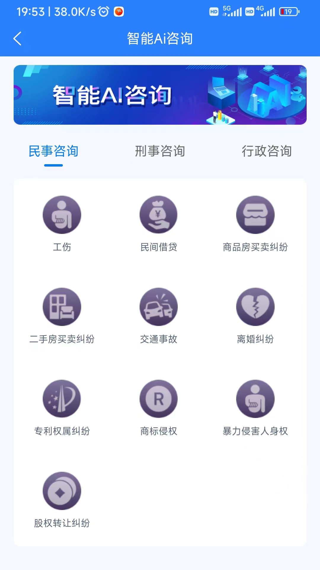用户可借助APP与虚拟法律机器人进行人机交互,机器人在交互过程中查明法律事实,自动匹配云端的法律依据,一键生成完全贴合个案的法律咨询意见,以供用户使用。