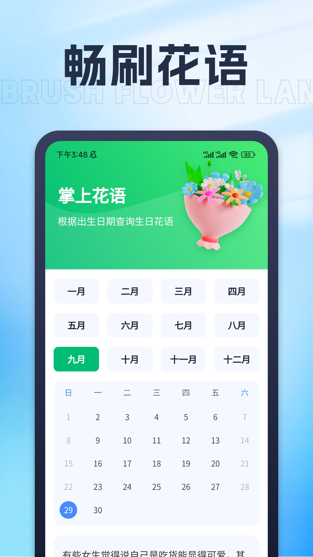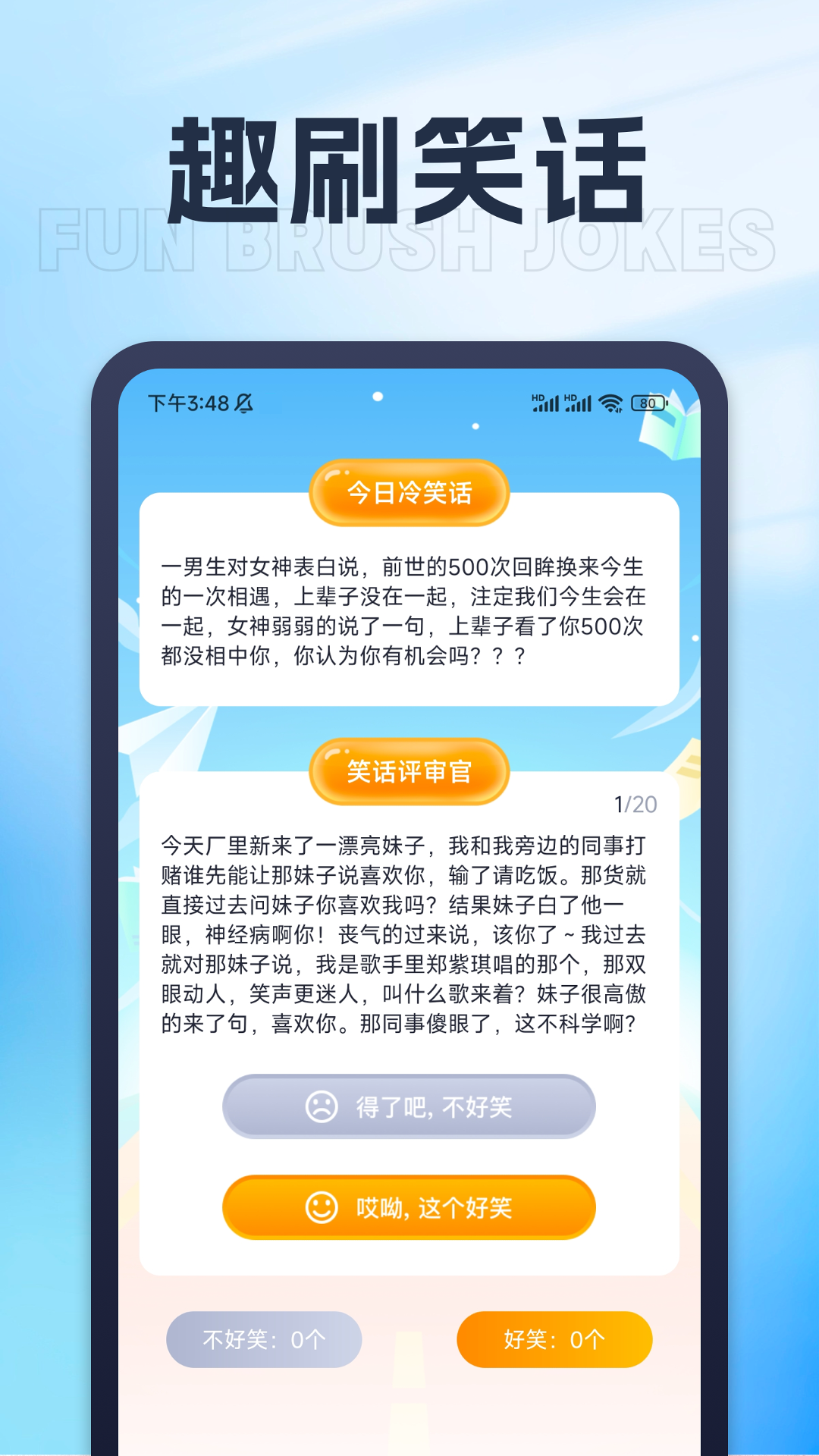 趣刷星球,您的快乐源泉与灵感栖息地!在这里,趣刷笑话让您每日欢笑不断,今日冷笑话逗趣升级,更有机会成为笑话评审官,品味幽默,分享快乐。享刷文案专区,精选走心朋友圈文案,让您的社交分享更加触动人心。畅刷花语,揭秘生日秘密,输入出生日即可解锁专属生日花花语,感受自然的浪漫与祝福。更有动物星球,宠物爱好者的天堂,一键搜索宠物名称,全面了解宠物知识,让爱与陪伴更加专业温馨。“趣刷星球“,让生活因趣味而精彩,每一天都充满惊喜与发现!