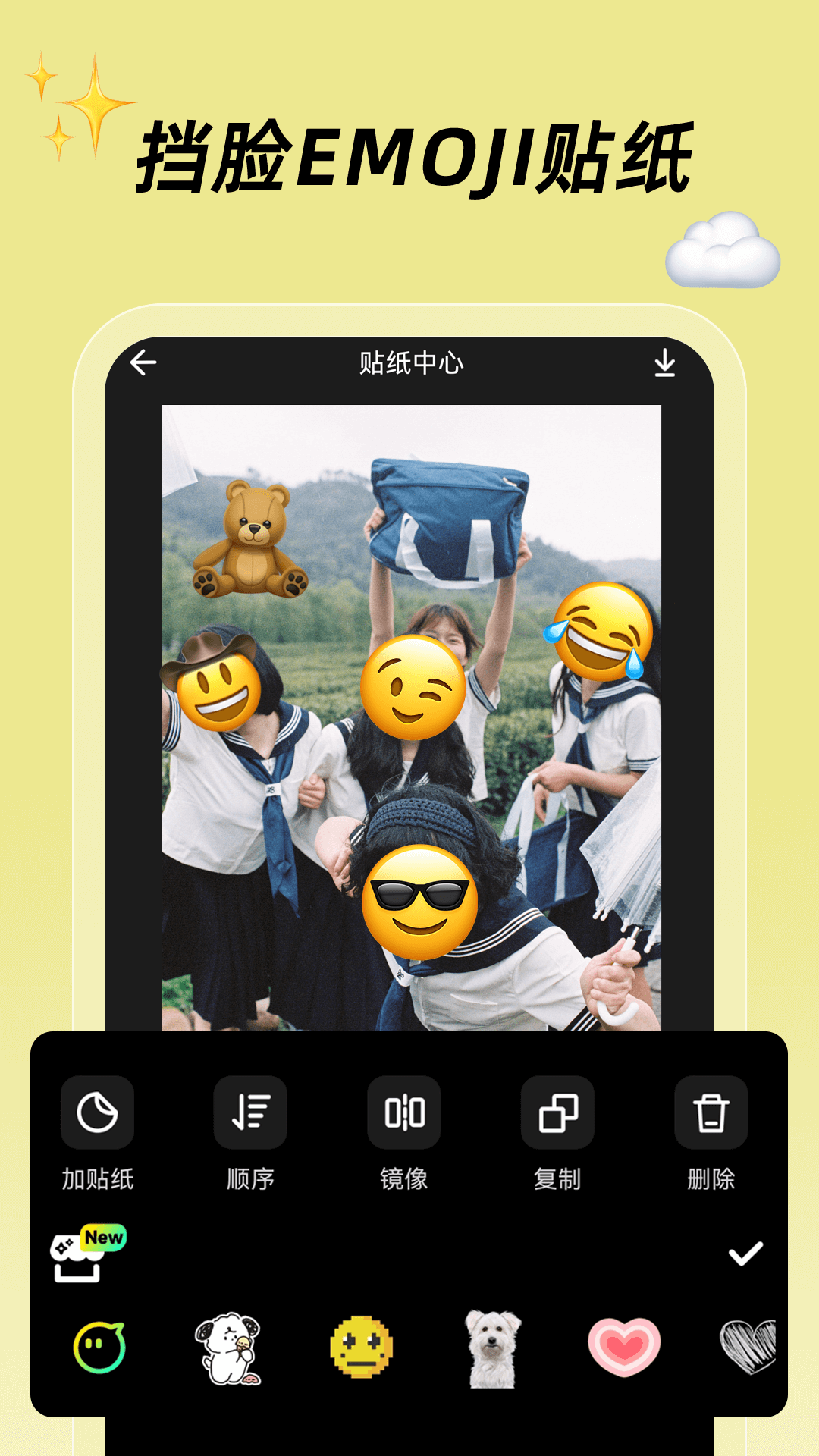 - 它能够紧追潮流趋势,定期对贴纸库进行更新,保证您的照片始终散发着新鲜的气息。