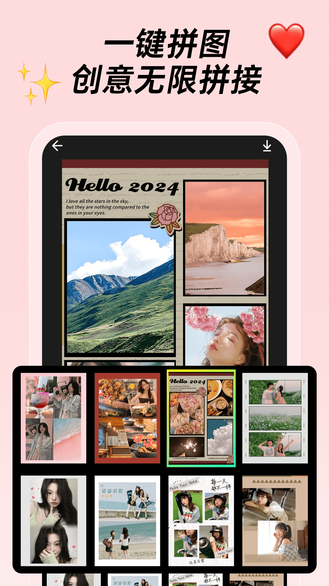 - 提供多种预设的布局模板,您只需简单操作,就能迅速制作出专业级别的拼图设计。