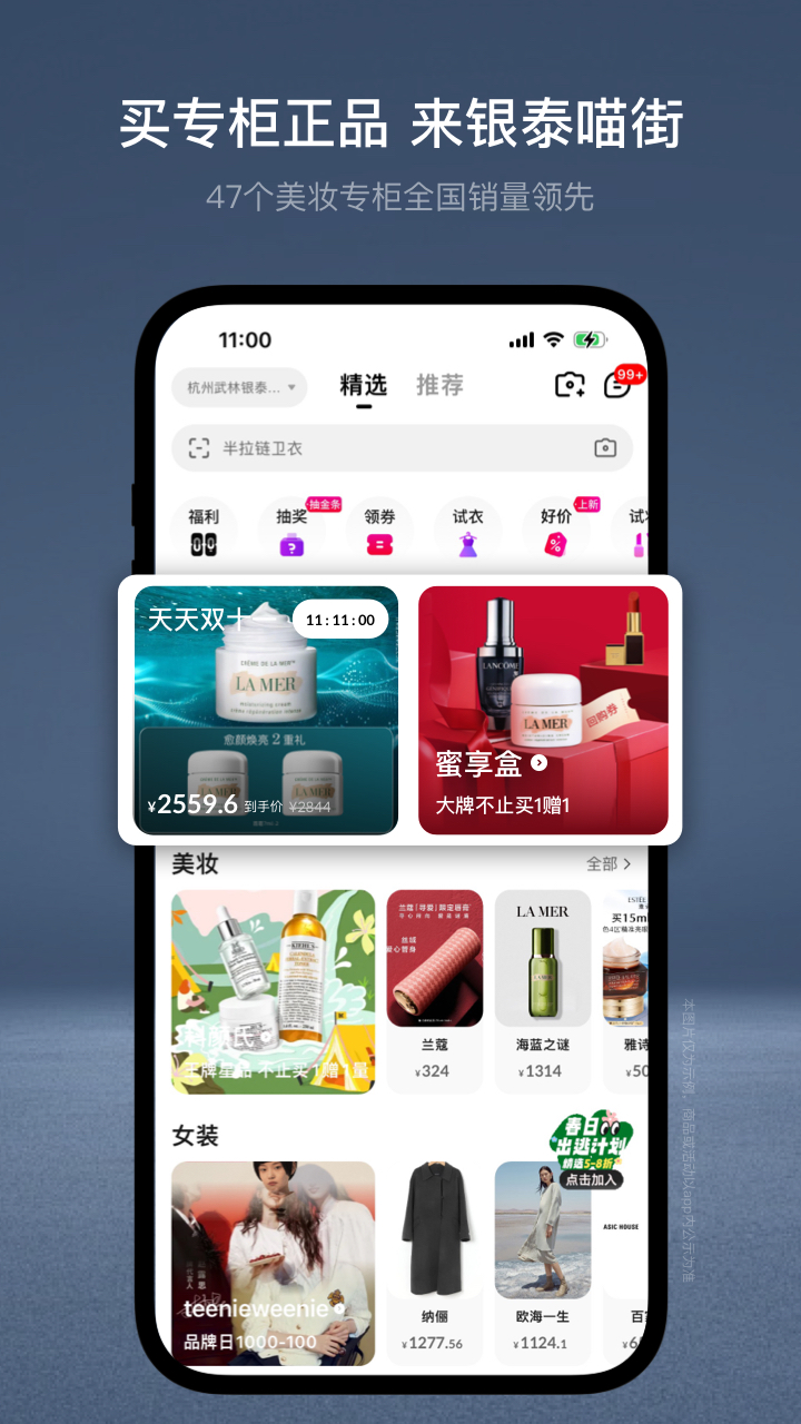 门店自提便捷:在喵街APP下单后,您还可以到银泰指定的线下门店自行提取商品。