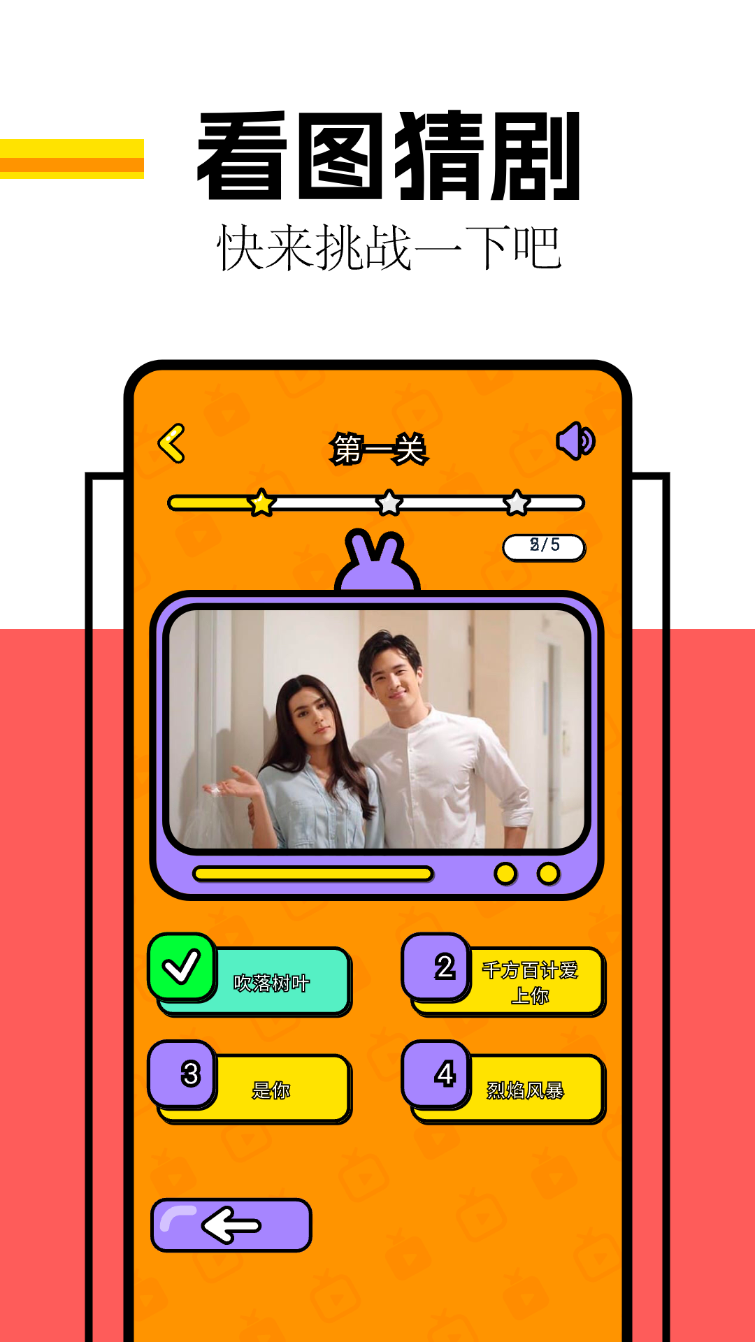这个应用十分简单易上手,只要依据提供的图片,猜出正确的电视剧名字、角色名字,然后选择正确的文字答题就可以啦!