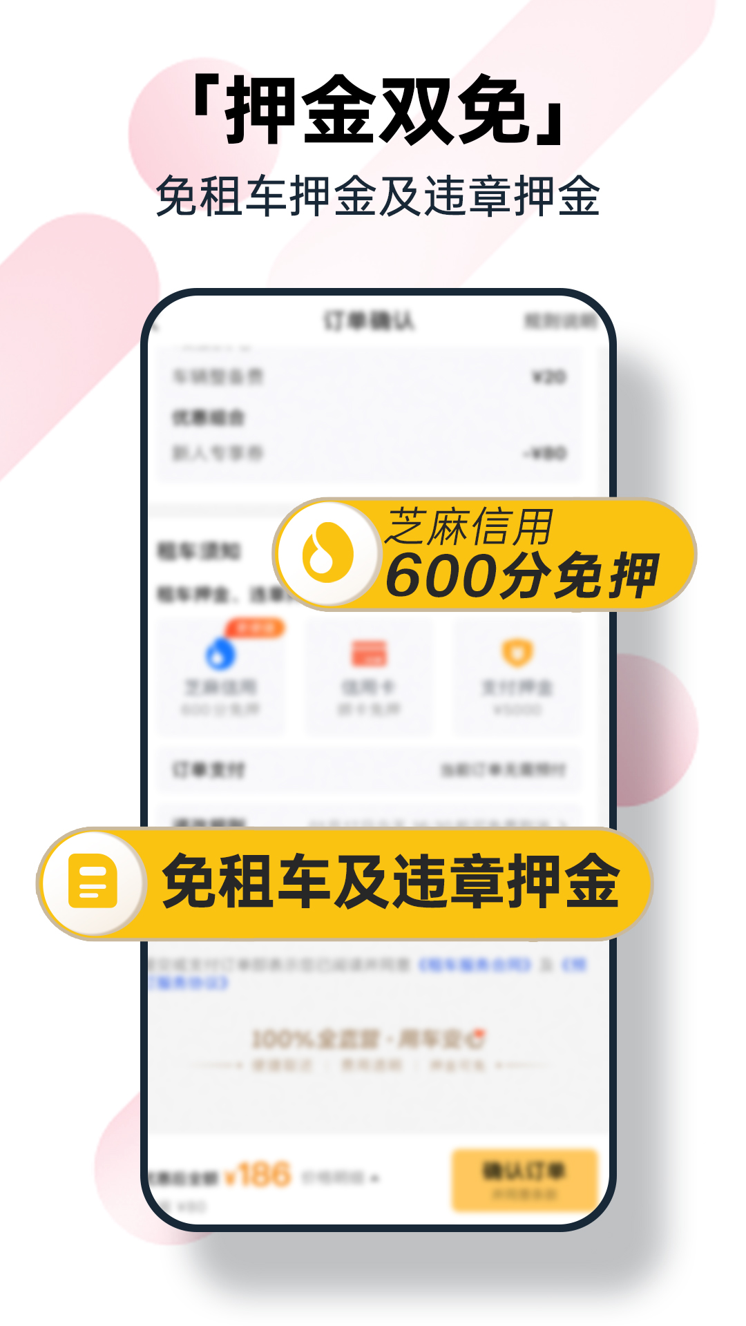您只要绑定信用卡或者芝麻分达到600分及以上,就能享受租车预授权与违章押金的双重免押服务,租车过程中的费用透明,让您租得安心。