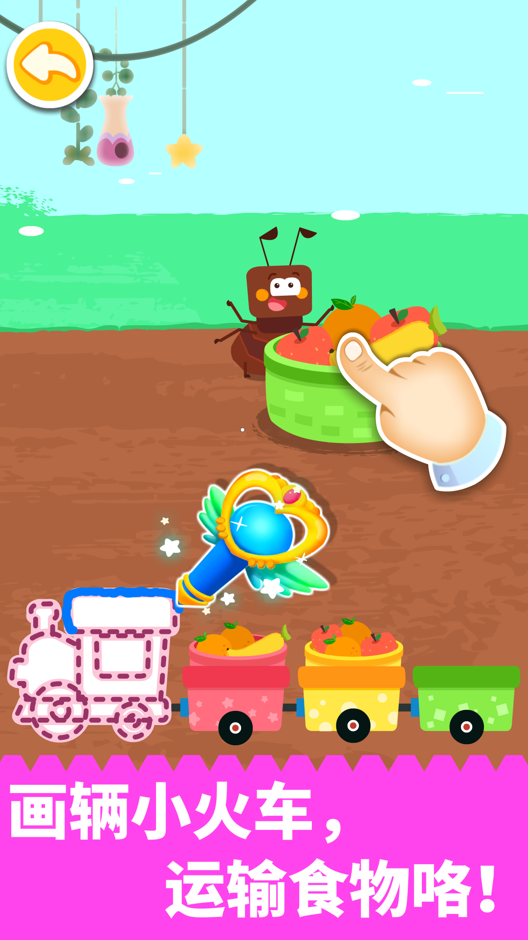 在创意涂鸦环节,宝宝可以玩转缤纷色彩呢。涂画的时候还能巧记颜色,红色、黄色、蓝色等各种各样的颜色,都等着宝宝来创意涂色。而且还有语音科普,能让宝宝轻松识记颜色的名称。在【拼贴宝宝画】里,叶子可以是彩色的,胡萝卜也能是紫色的,绚丽多彩的画作任由宝宝自由涂色。