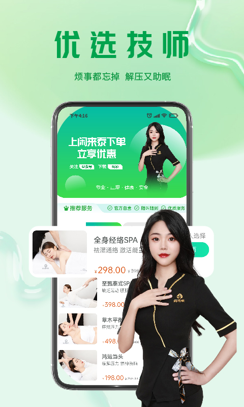 它主要面向三类人群提供服务,一是居家不想出门的“懒人”,二是正在出差或者旅行途中的人士,三是酒店中的顾客。“闲来泰”所提供的服务具备专业便捷、正规安全以及健康养生等特点。该商家拥有一支高素质、高技术的服务团队,团队成员呈现年轻化、专业化的特征。