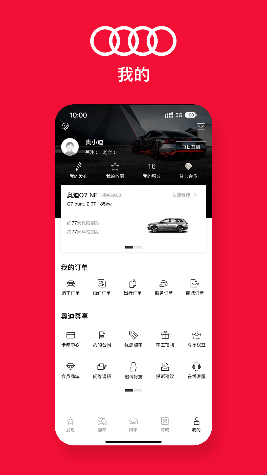 一汽奥迪App v3.0.0重构底层功能逻辑与应用技术架构,聚焦用户旅程实际用车场景,反复实践优化体验再出发,为您提供如下核心板块内容: