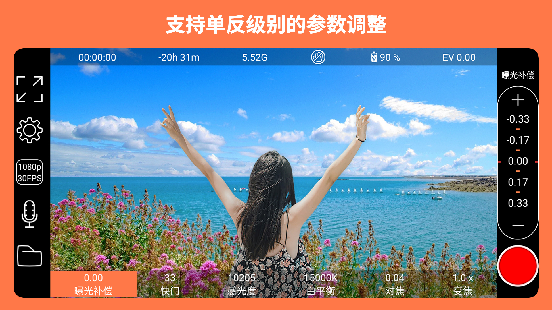 - 拍摄参数手动控制方面:支持手动控制曝光、快门、感光度、对焦、变焦以及白平衡。