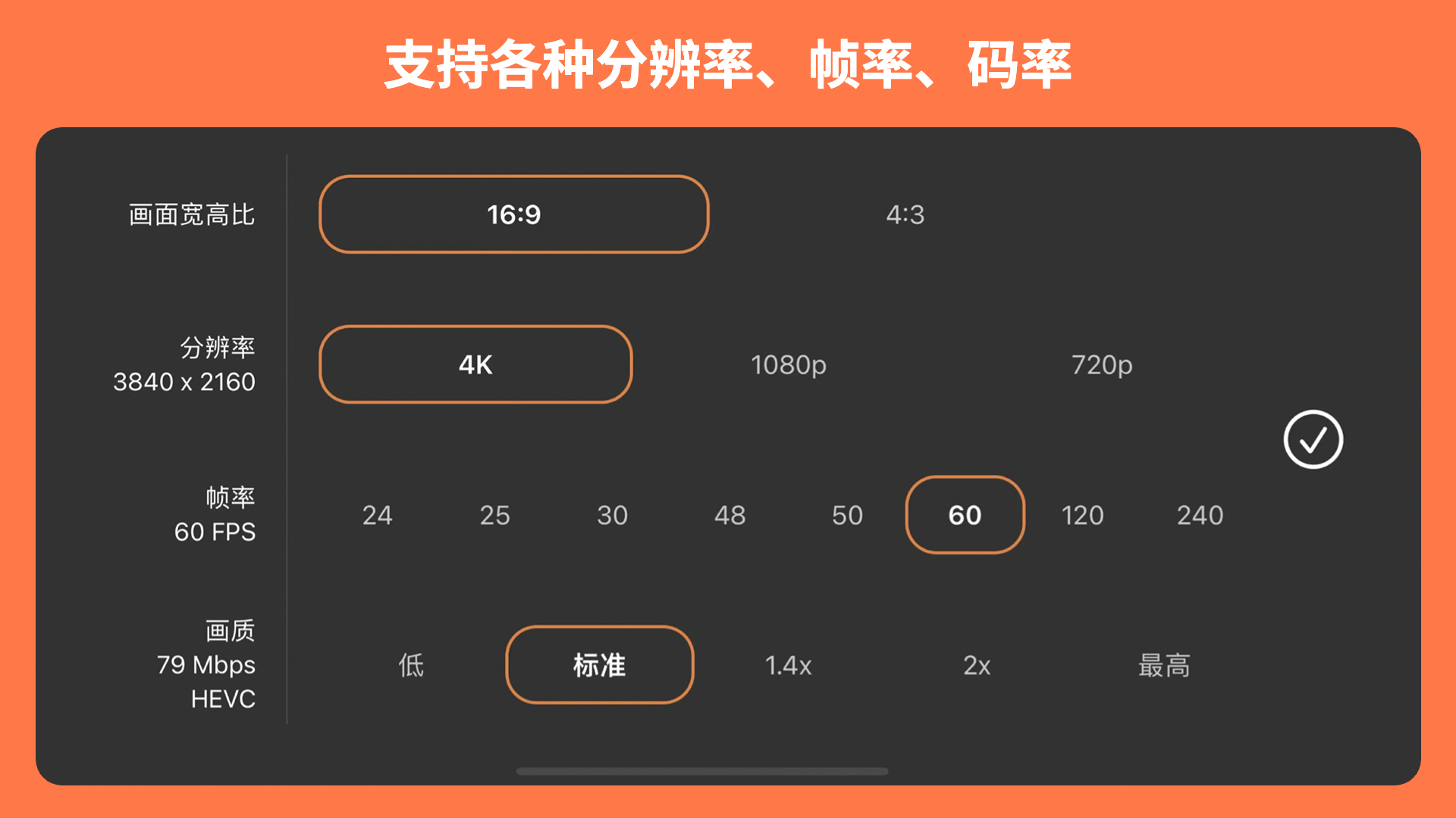 - 支持超高分辨率视频压缩,并可导出保存到手机相册。