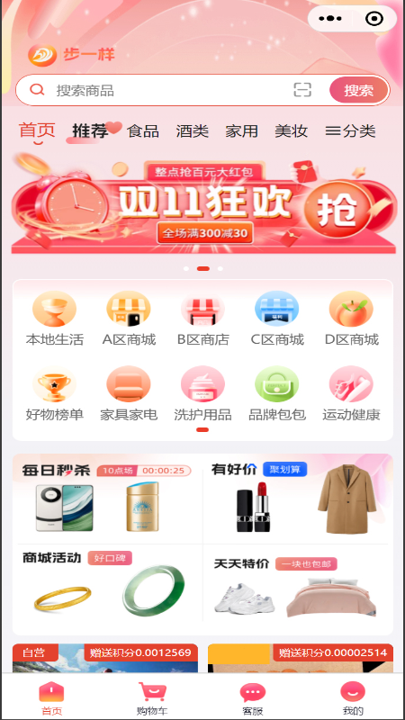 步一样APP是一款由我们自主研发的便民利民购物平台。在这个APP中,有着丰富多样的内容。其中自营商城为用户提供了琳琅满目的商品选购服务;积分兑换功能让用户在消费的同时能够积累积分,并使用积分兑换心仪的商品或服务;本地生活板块聚焦于用户身边的各类生活服务与资讯,让生活更加便捷;商业推广板块则为商家提供了展示自身产品与服务的优质平台。