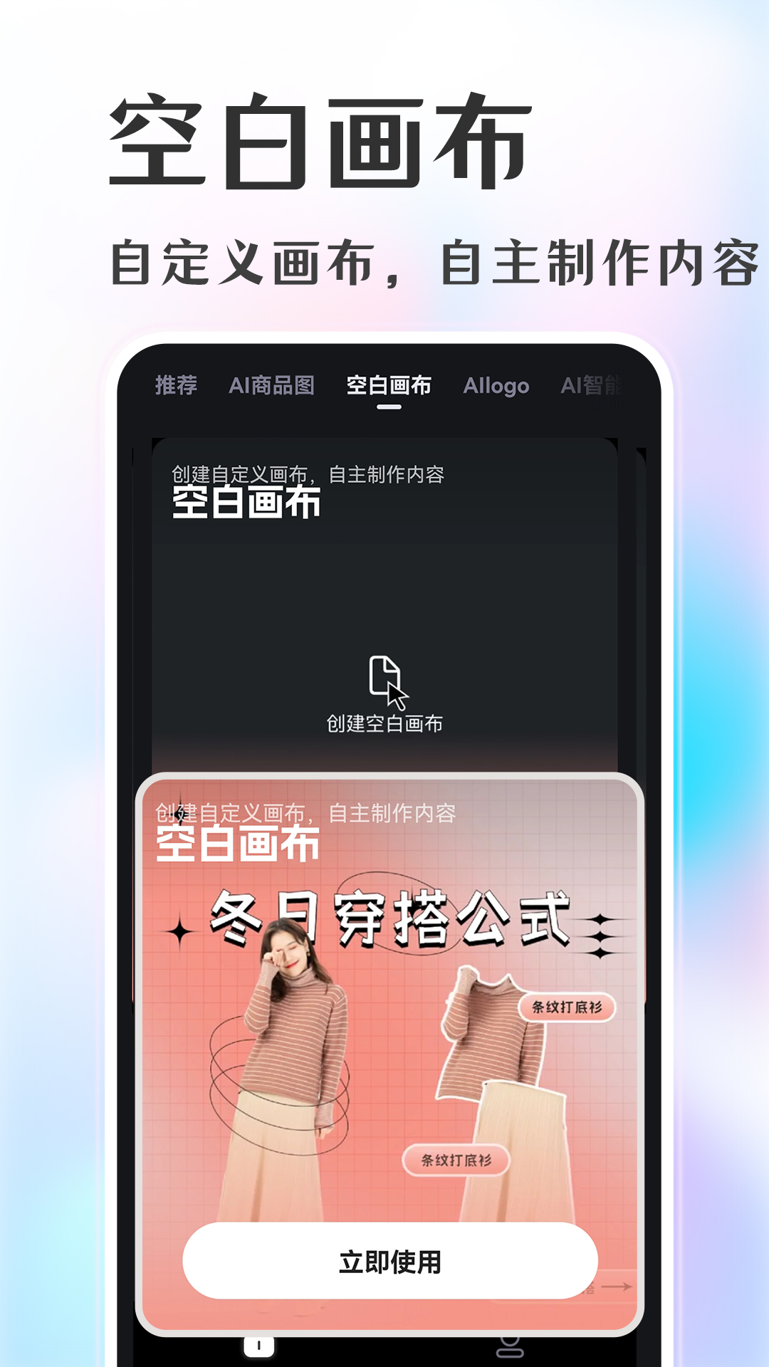 你是否经常为设计发愁?AI商品图app为你提供一站式解决方案。无论是商品图的制作,还是空白画布上的创意穿搭,每一处细节,每一次灵感,都在这里绽放。
