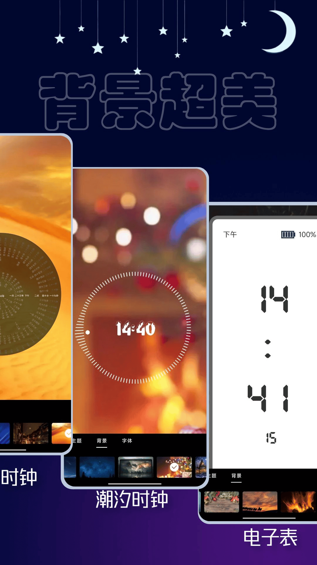 **背景图片、字体、颜色、蒙版、动画……贴心的个性化设置,打造一款与众不同的专属自己的助眠时钟!