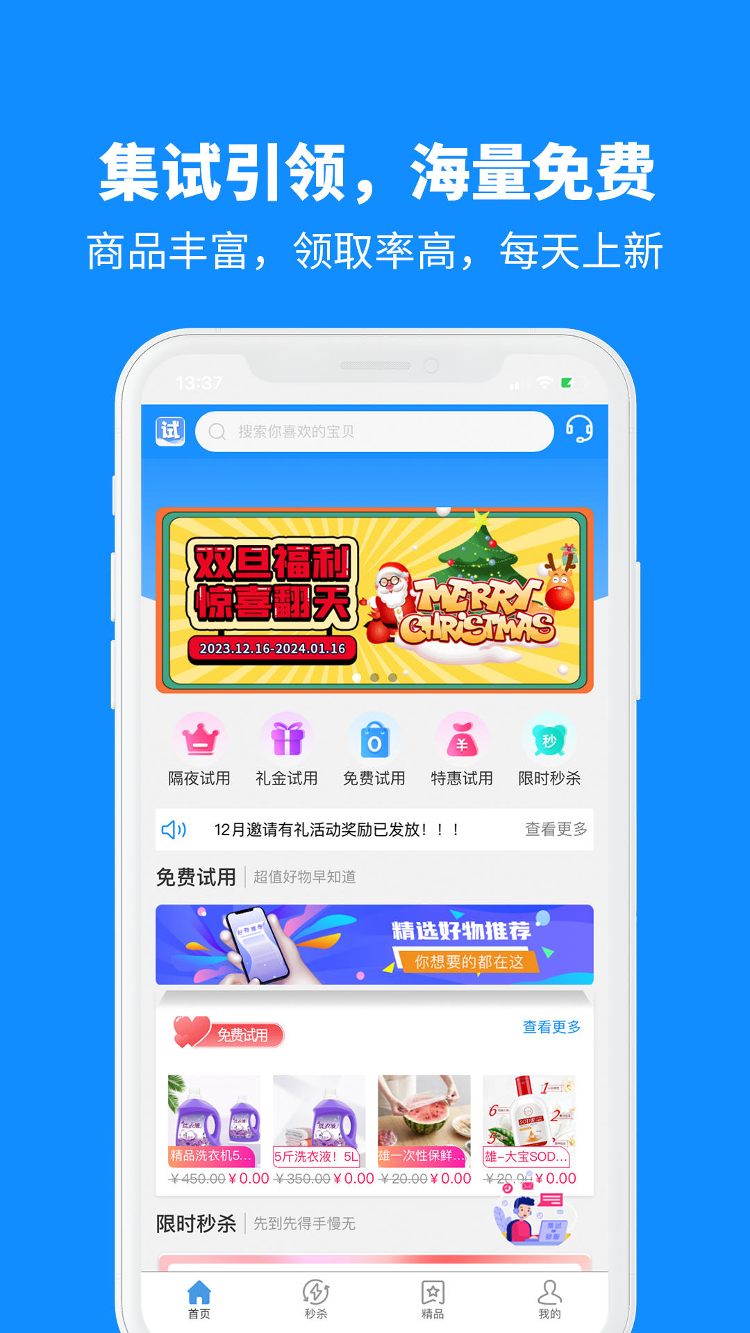 集试是一个专注于免费体验营销服务的平台。它集商品试用、举办活动、用户营销等功能于一身,每日都会为用户供应上千款商品,这些商品真实可靠且获取便捷,全部免费。同时,该平台支持淘宝、天猫、京东、拼多多、阿里巴巴、抖音等众多平台。