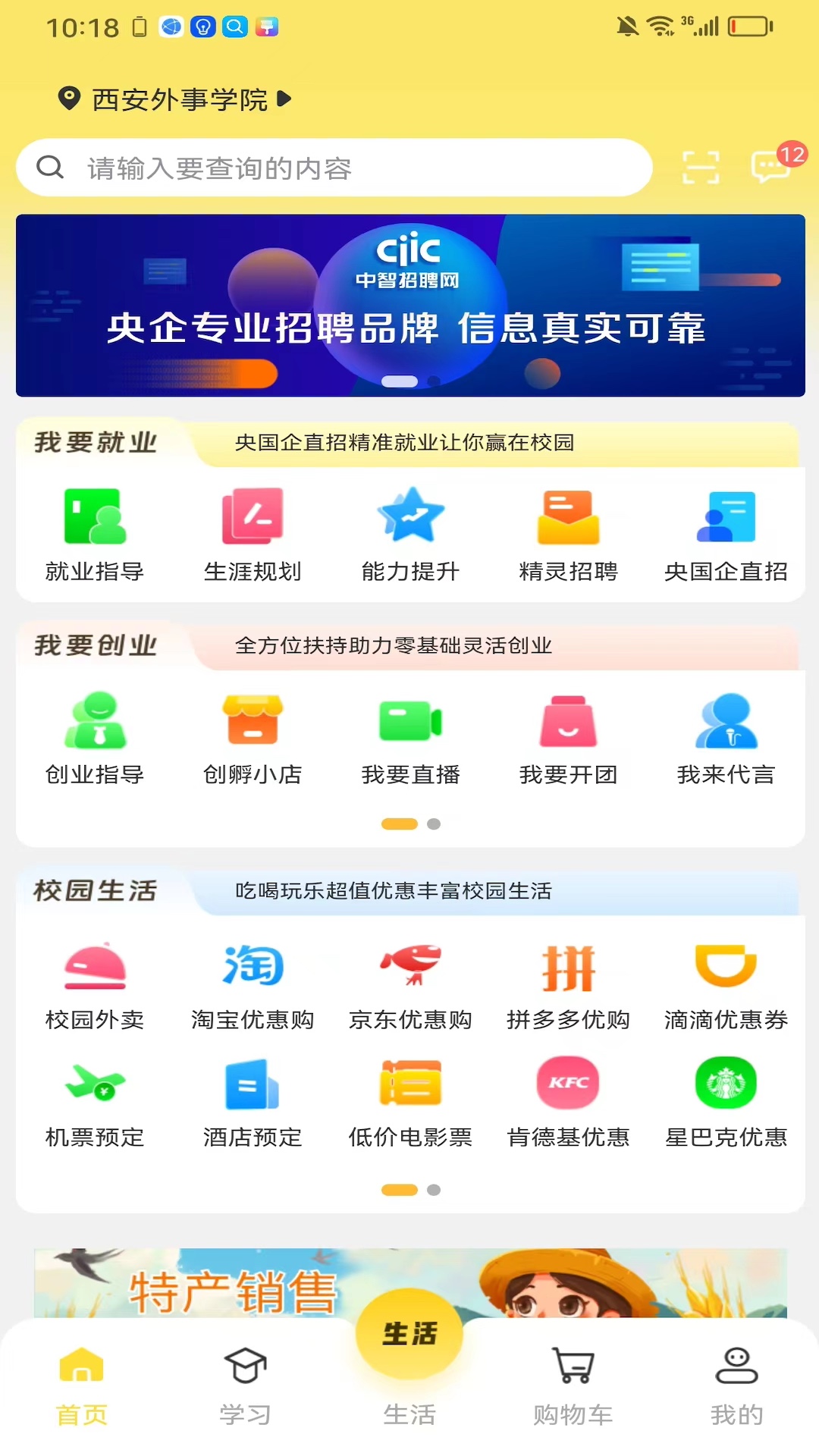 大学生都在用的校园生活服务平台,集校园外卖、商城、家乡代言、机票酒店预定为一体的综合服务平台,方便大学生生活。