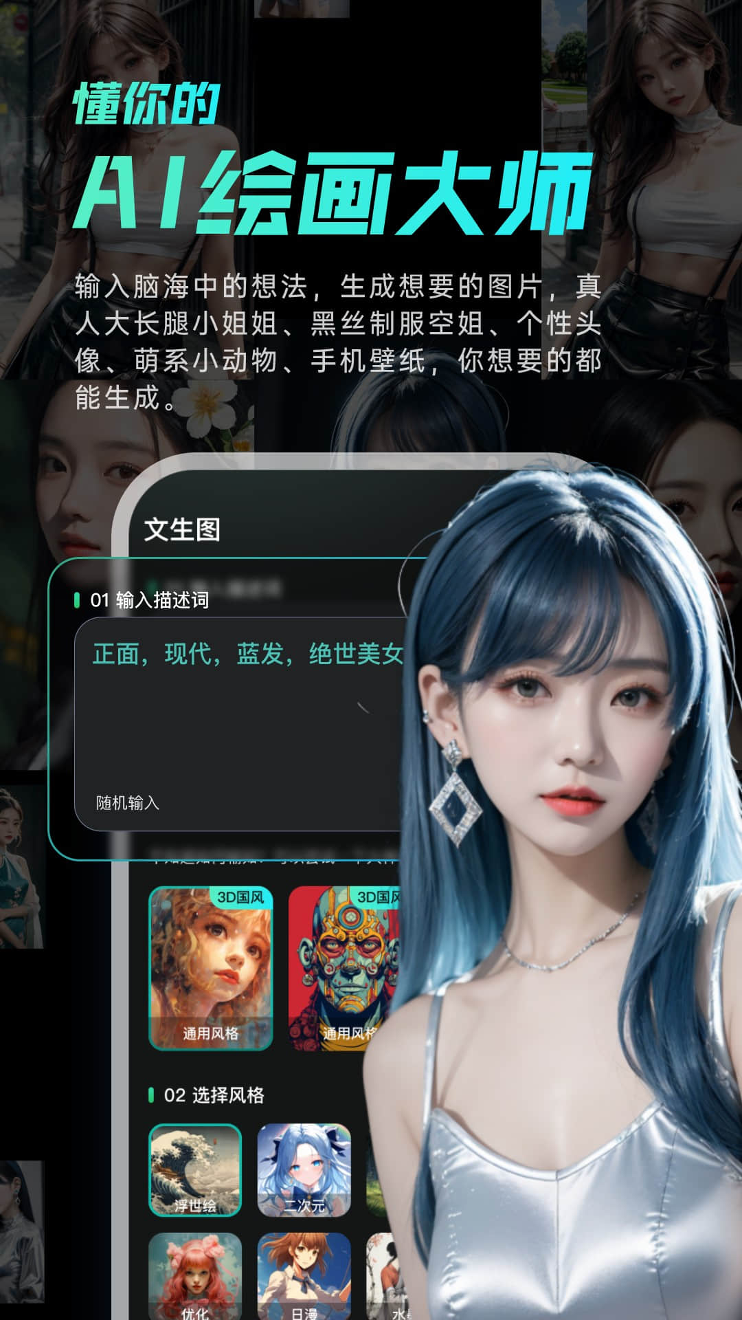 您只需把脑海中的想法输入进去,就能生成您想要的图片。无论是拥有大长腿的真人美女、身着黑丝制服的空姐,还是个性十足的头像、可爱的萌系小动物,亦或是手机壁纸,只要是您心中所想,问道AI都能为您生成。
