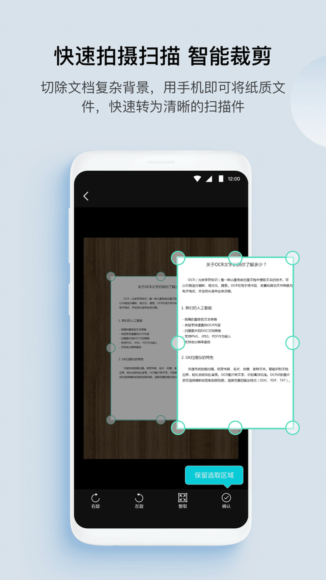 - 利用手机拍摄文档时,能够进行准确的扫描、简单的编辑并分享,可生成高清的JPG图片或PDF文件。