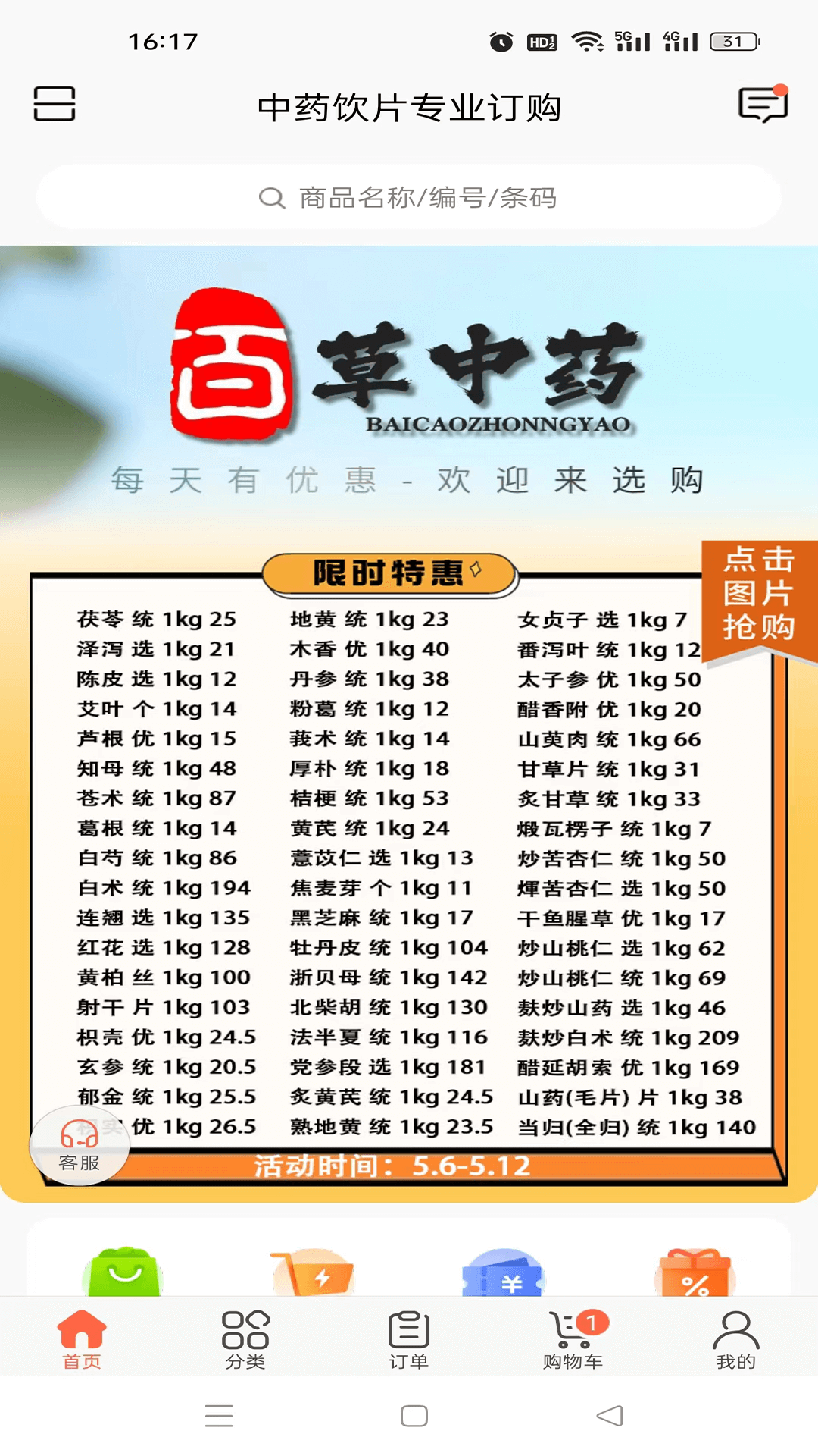百草药仓是一个全品类一站式的订货平台,涵盖中药饮片、中药代煎、精品花茶等多种产品。