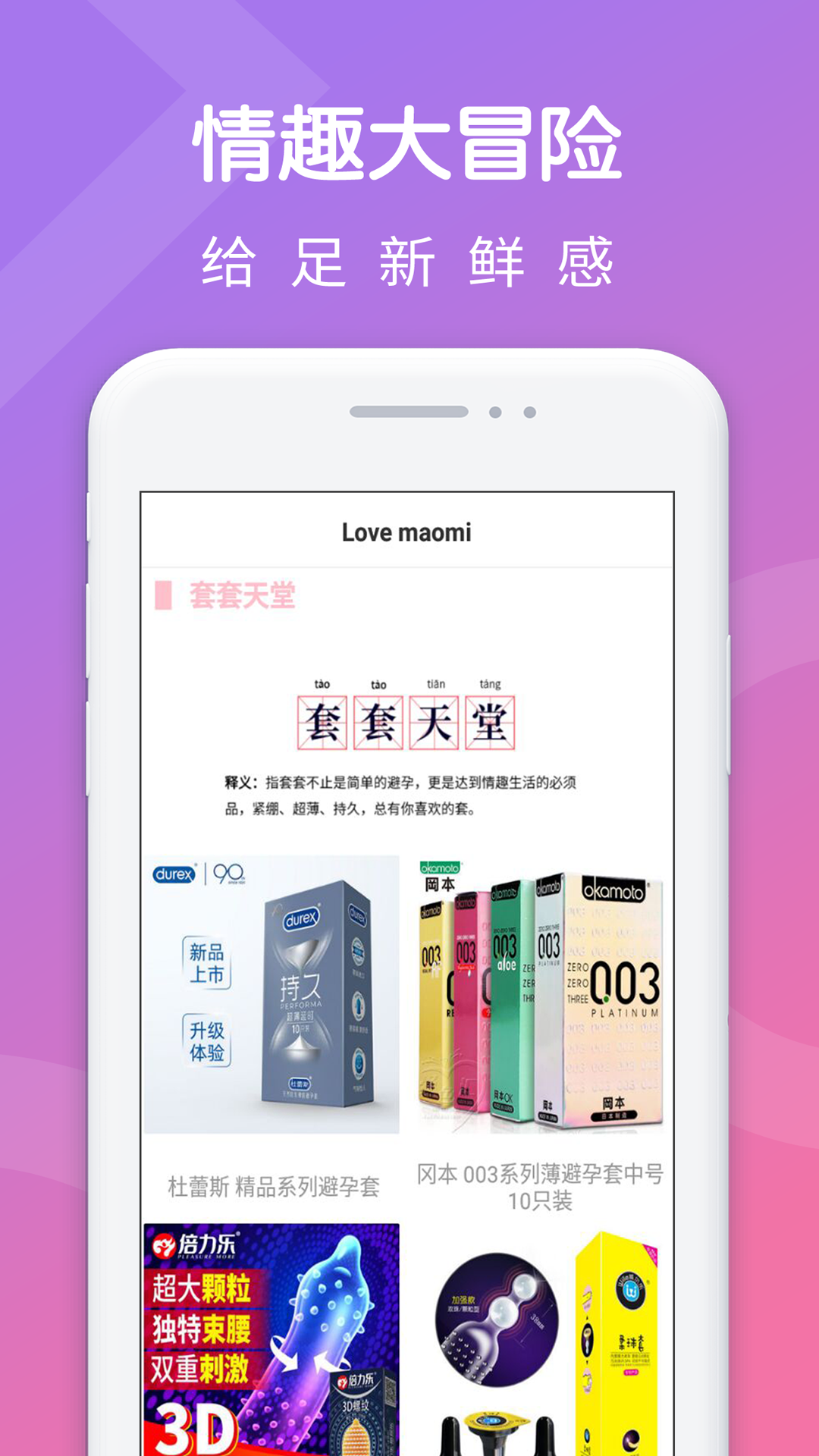 这里是年轻人都爱玩的情趣购物商城,上千款新奇情趣用品任你挑选;在这里有您想看的情趣动态,在这里让您的情趣生活不再单调;