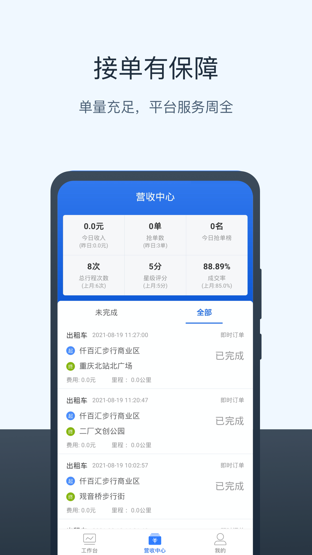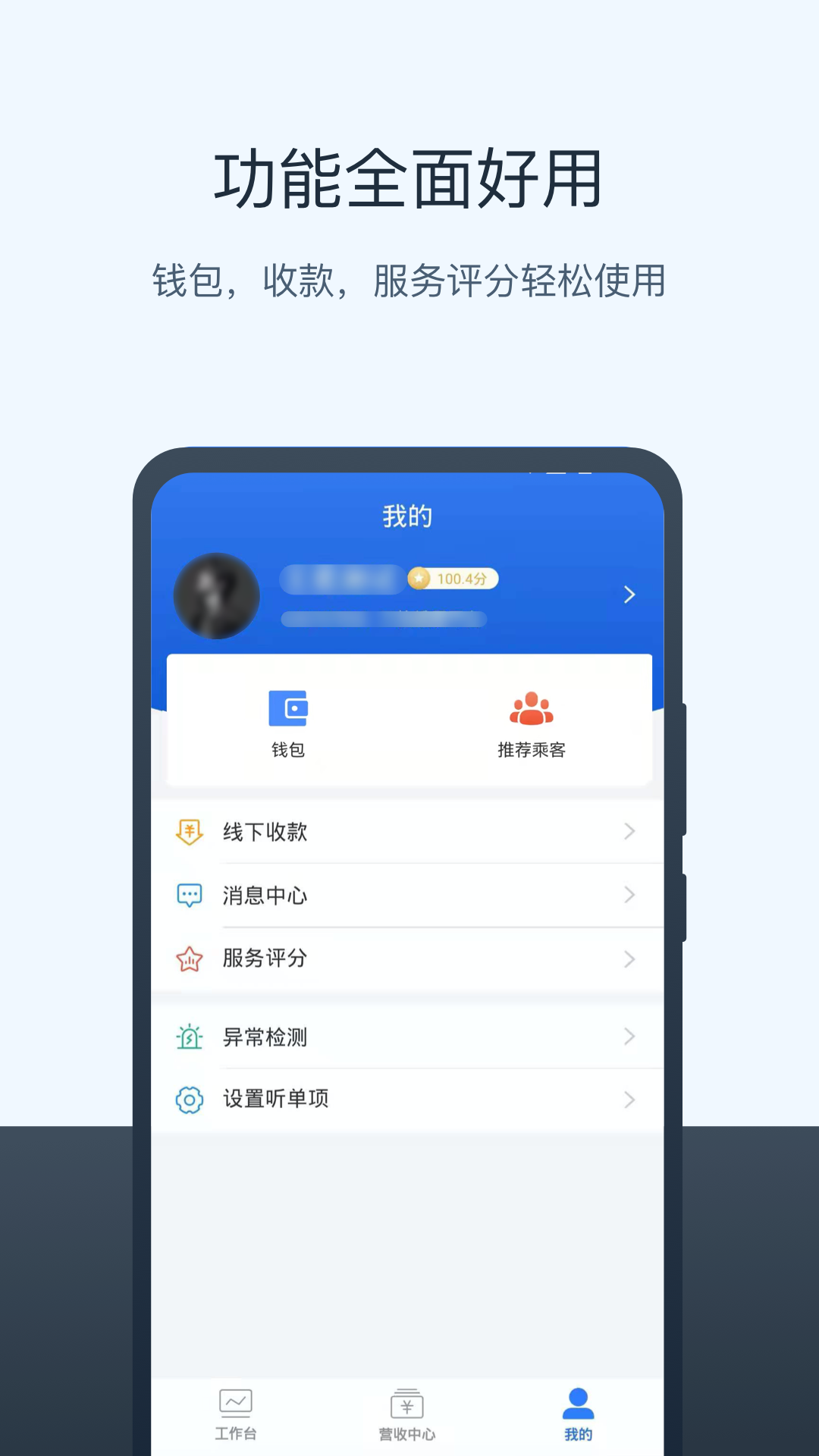 页面简洁,使用一键上手;多个渠道,多点收入;安全合规,全天派单,订单可选。