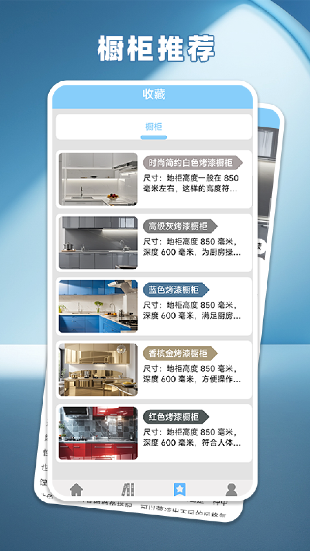 家有橱柜 APP 中收录了各种橱柜的尺寸信息,无论你是小户型需要节省空间的紧凑型橱柜,还是大户型追求大气奢华的大型橱柜,都能在这里找到合适的尺寸。详细的尺寸标注让你在挑选橱柜时能够准确把握其在空间中的占比,避免出现尺寸不合适的尴尬情况。