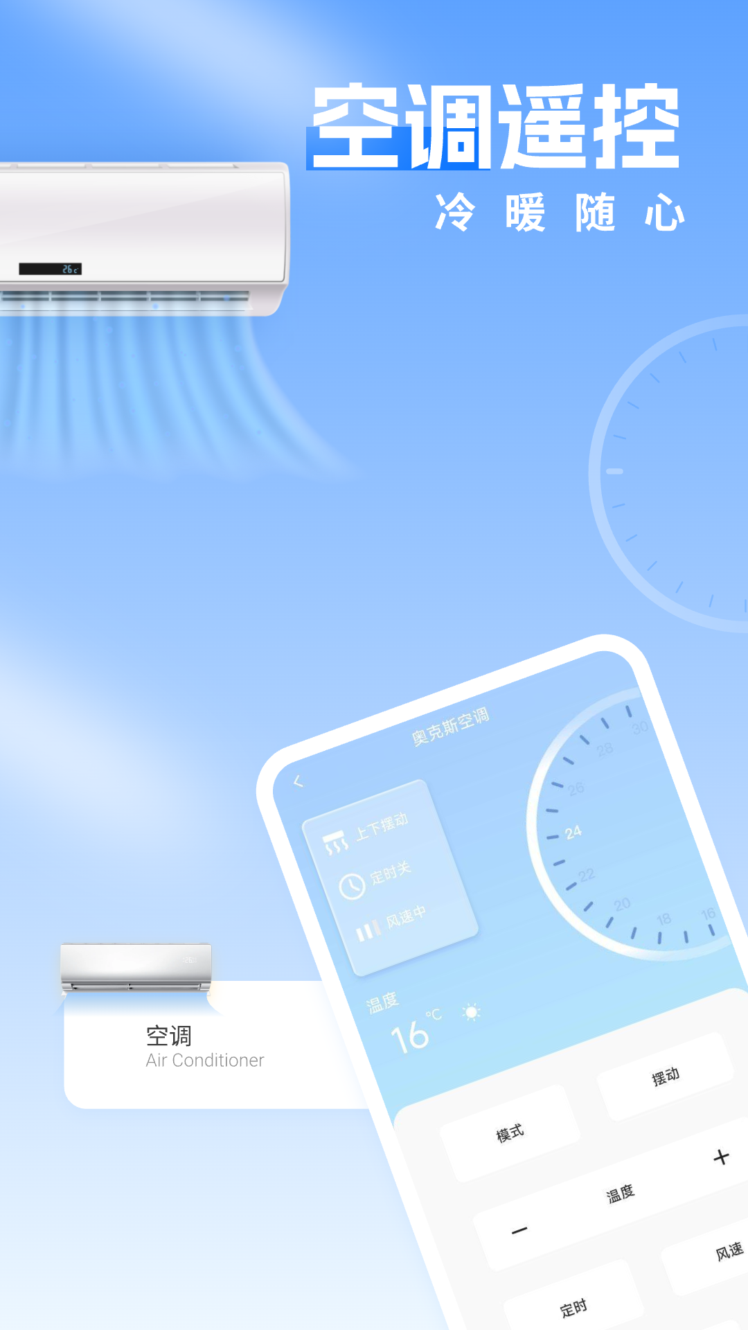 这款App能够完美模拟空调原装遥控器,功能十分强大。在遥控空调时,除了可以进行制冷、制热以及调节温度这些基本操作之外,还支持调整睡眠、超强、清新、节能、除湿等多种模式,并且能够设置定时开关。
