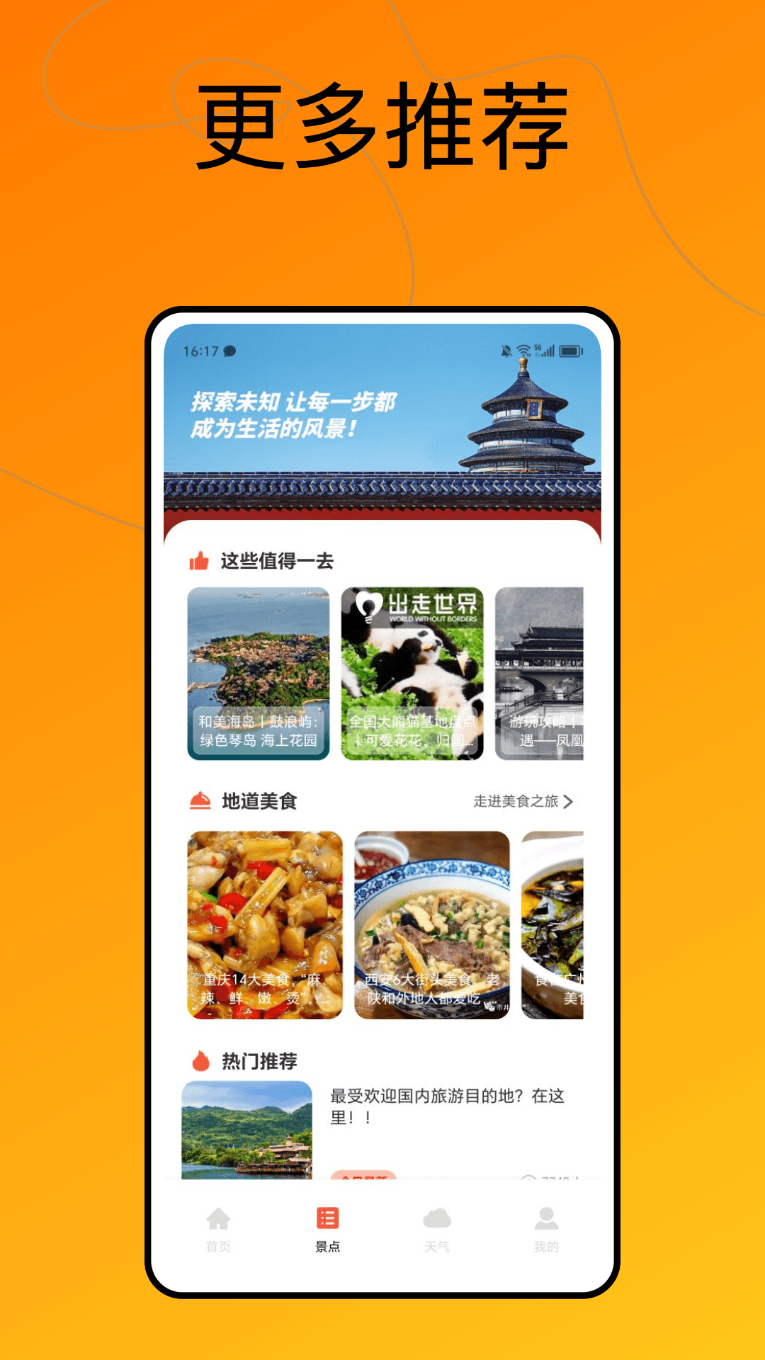 提供热门景点详尽的介绍,像景点的历史渊源、开放的时间、门票的价格以及游览的小贴士等都会一一给出。