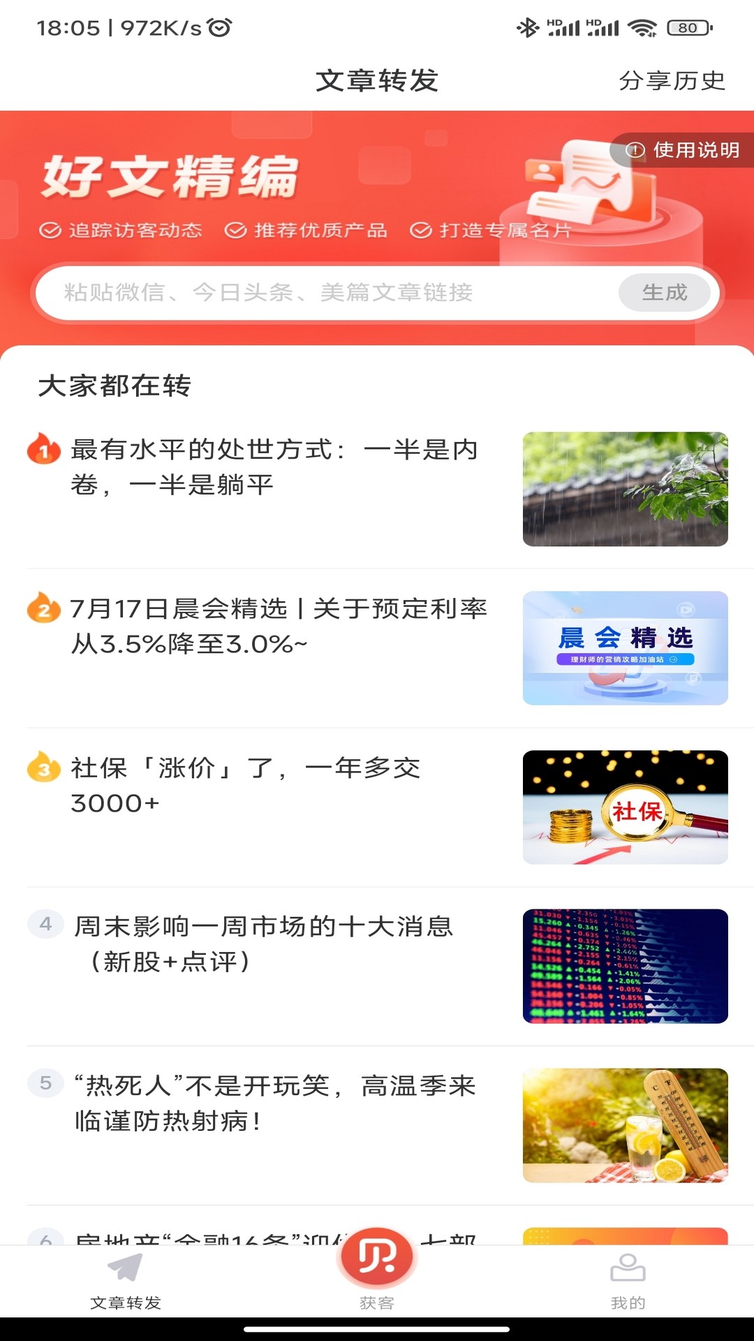 【营销获客】功能,支持一键转发短视频、热点资讯等素材来实现裂变引流,并且能随时追踪朋友圈访客的轨迹,从而锁定意向客户。