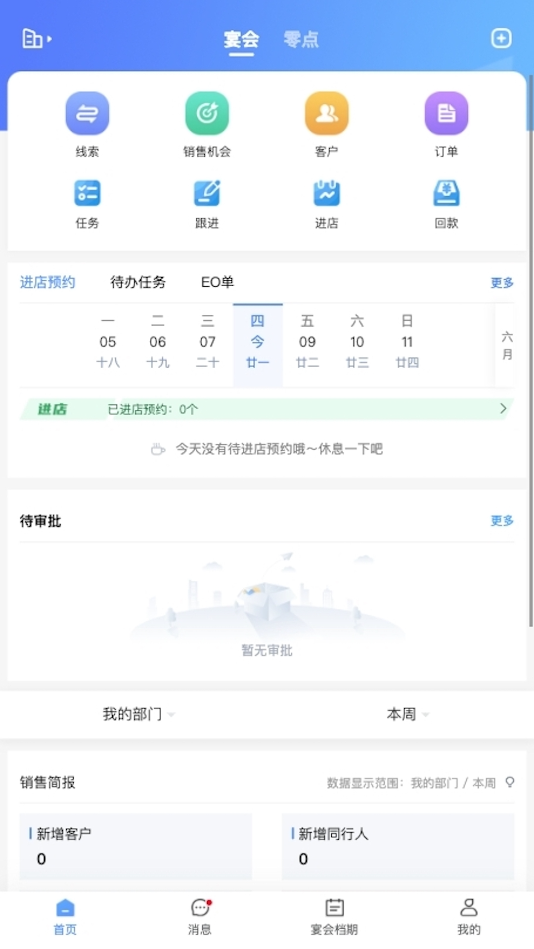 销控的核心目标就是向过程拿结果。宴荟佳助力您的线索管理、档期管理、回款管理、任务管理和效能分析。谈单阶段定义;吉日等级设定、自动提醒功能、统计邀约到店率、展现长短单占比等……