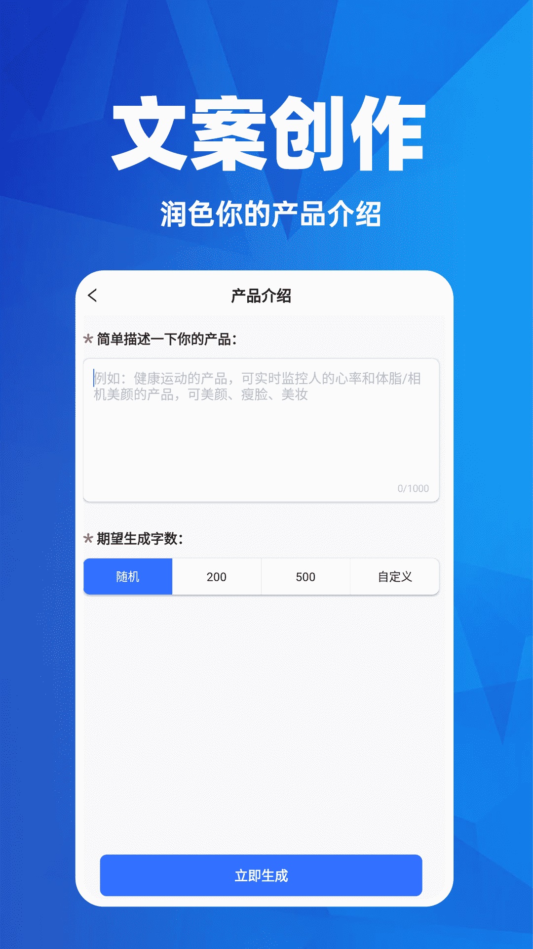 这款APP操作起来十分简单,极易上手。你只需输入简短的需求内容,然后轻轻一点,就能一键生成文案啦,这可是帮你节省了不少的时间呢。