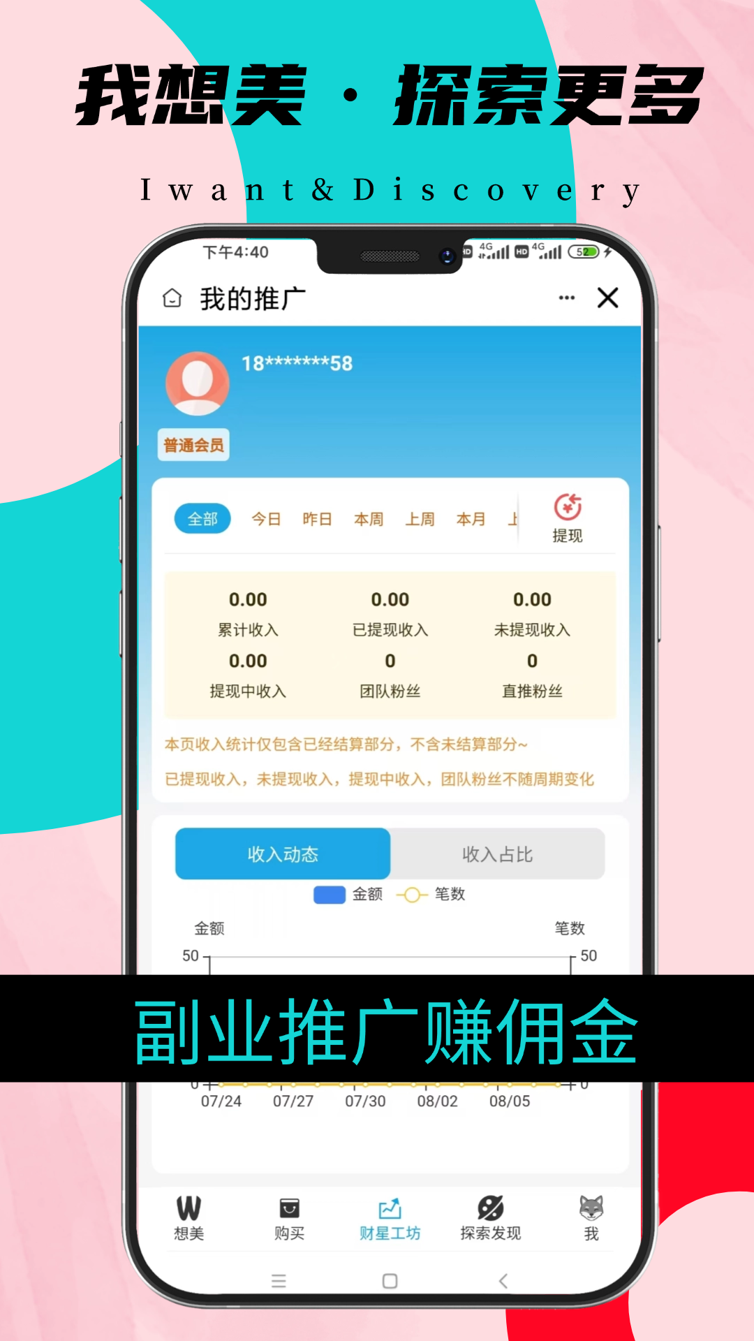 其二,支持兼职创业。“我想美”专门设置了“兼职创业”专区,并且运用多种促销方式来助力,像是发放优惠券、提供会员折扣、开展督导会员导购活动,还有积分等方式,这些都为想要兼职创业的人士提供了有力的支持。