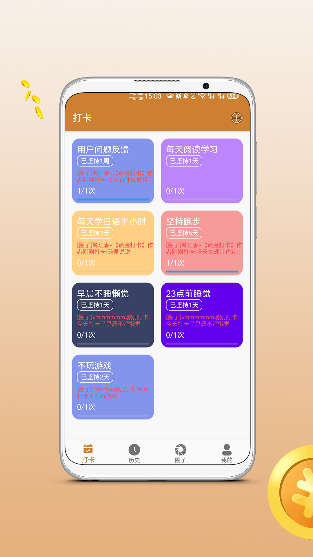 从即刻起,成为一个自律之人吧。让我们共同参与点金打卡,寻觅属于自己的圈子。