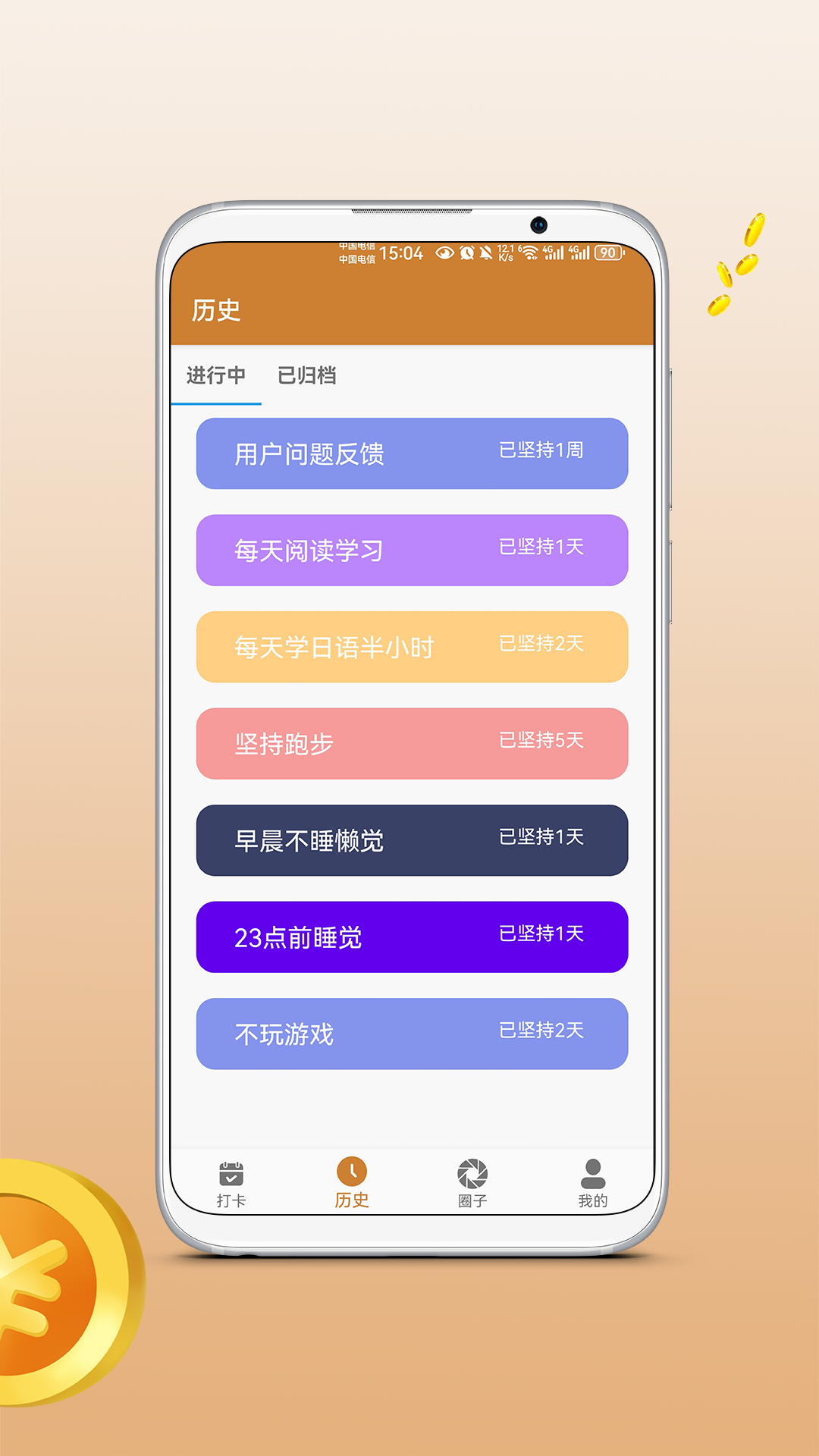 - **历史查看**:可以查看打卡的相关记录以及打卡的进度情况。