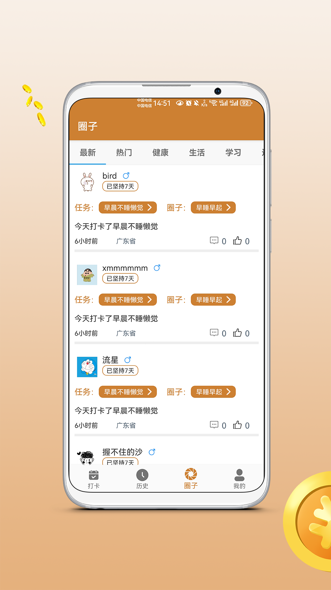 - **圈子互动**:在圈子里,能与其他成员进行互动,彼此督促、相互鼓励,从而携手共同进步。