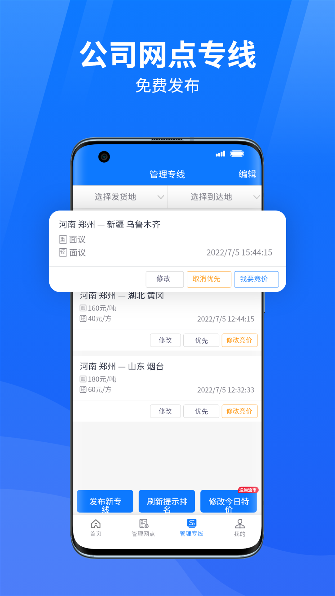- 发布专线:把物流线路发布到物通网上进行推广宣传,吸引更多的客户。