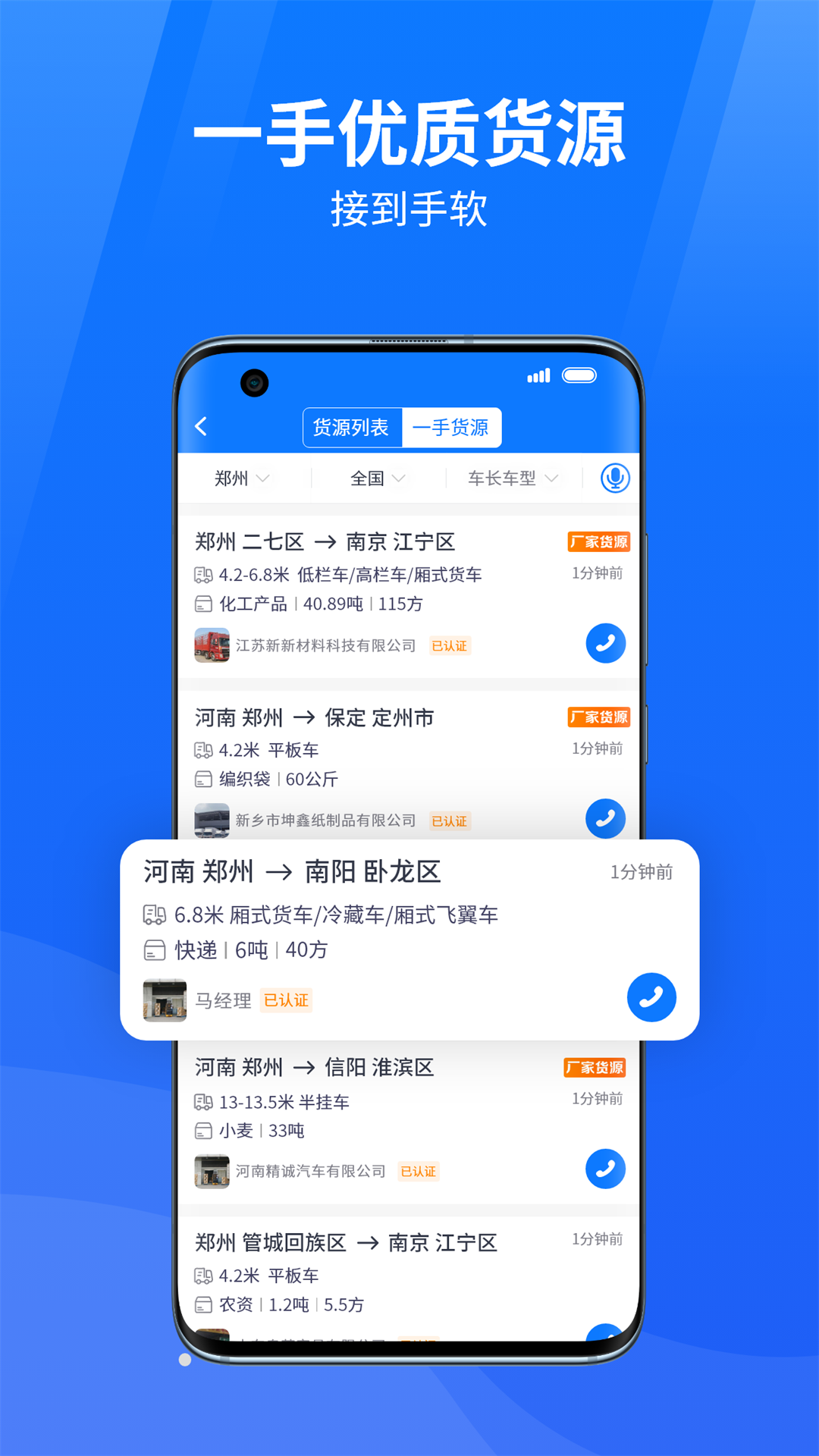 物通网依托国内首屈一指的物流货源信息平台,每日货源信息海量更新。这里的一手货源、厂家货源品质可靠,并且拥有百万发货企业以及货车司机认证资源库,助力客户轻松开展业务,发展属于自己的长期稳定货源客户,从而确保每天都有充足的货源,每趟运输都能满载而归。同时,还提供回程车、返程车源信息,以较低的成本保障更高的利润。