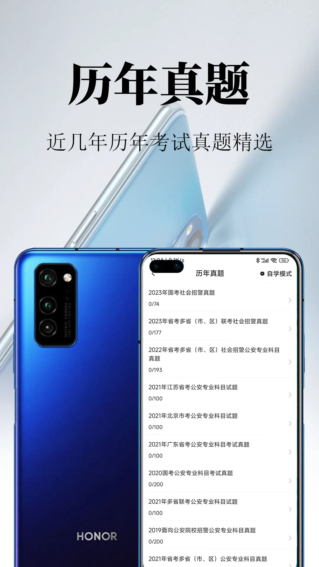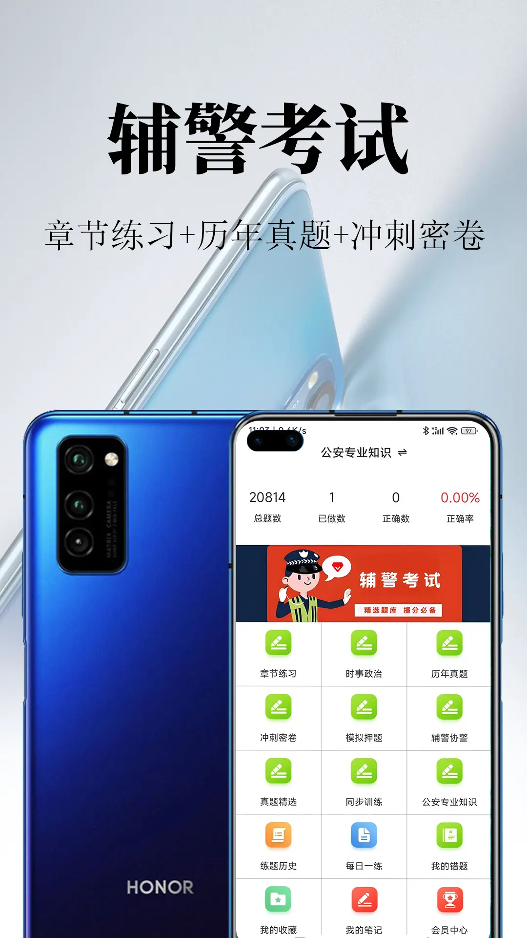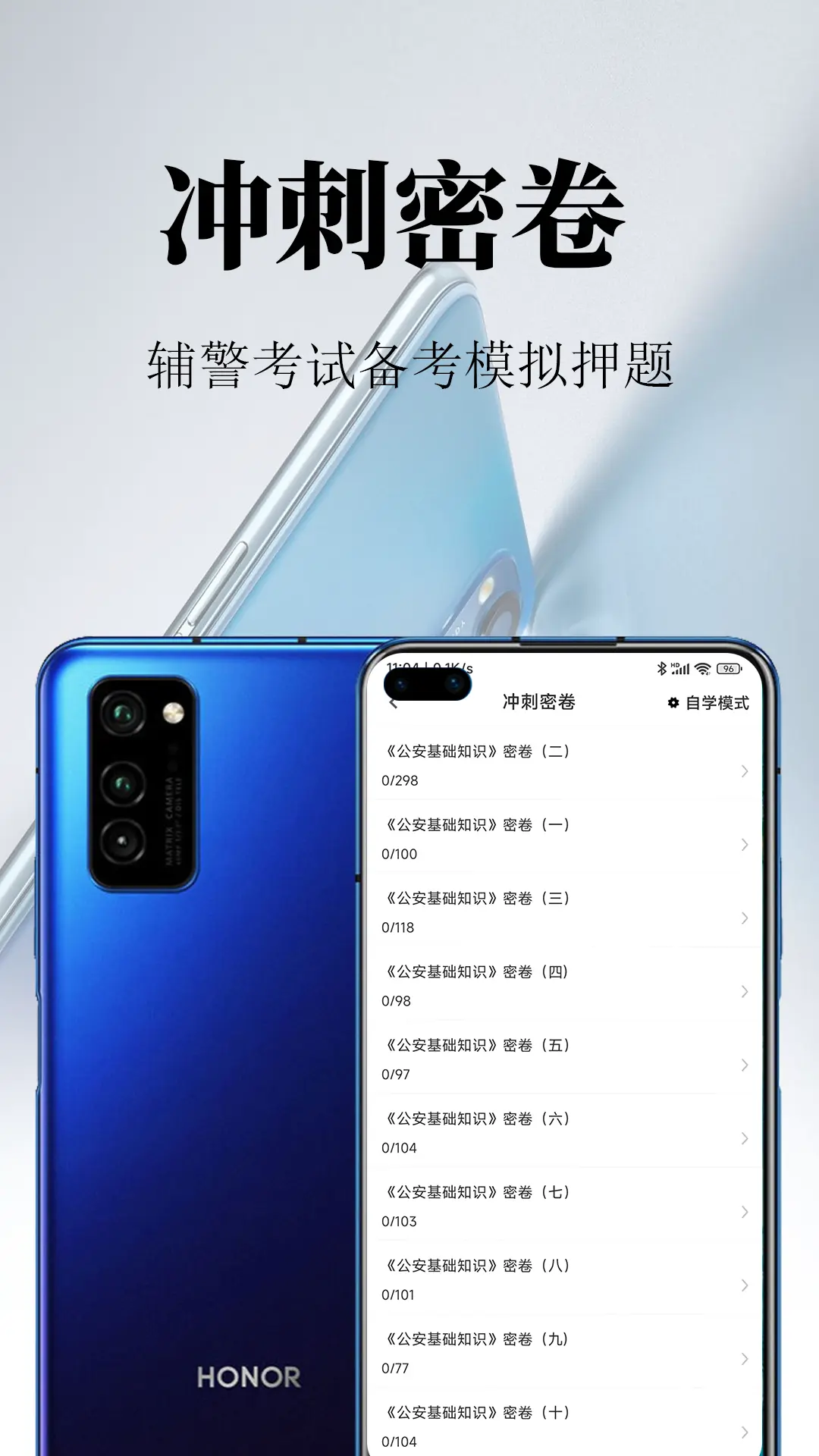 本软件为2024年辅警招聘考试题库软件,根据新大纲,精心准备的精品题库。包括章节练习+模拟押题+历年真题,并有答案解析。为考试的提供了充分的复习准备,可随时随地学习练习,有效帮助顺利通过考试.