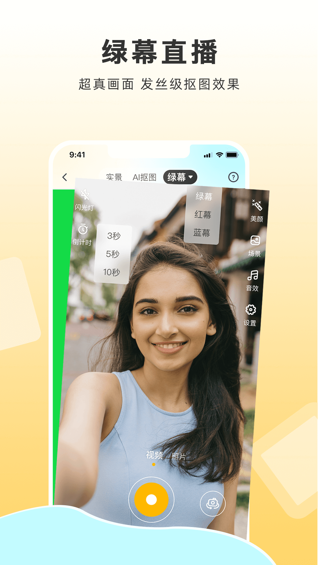 【实景&绿幕&AI直播】直播模式任您选择,您可以进行实景直播,也可以选择绿幕直播,还能开展AI直播。其虚拟背景效果融合度超高,仅用一部手机就能迅速切换直播背景。
