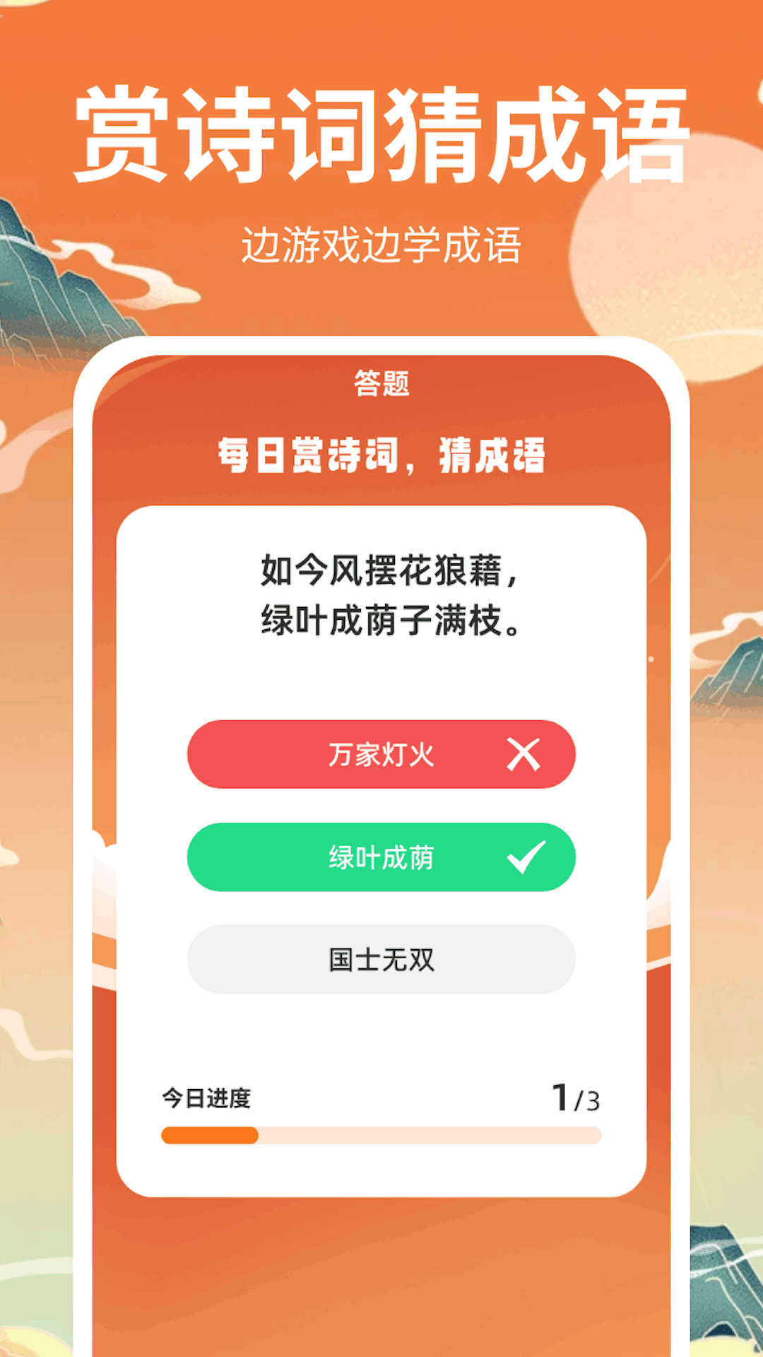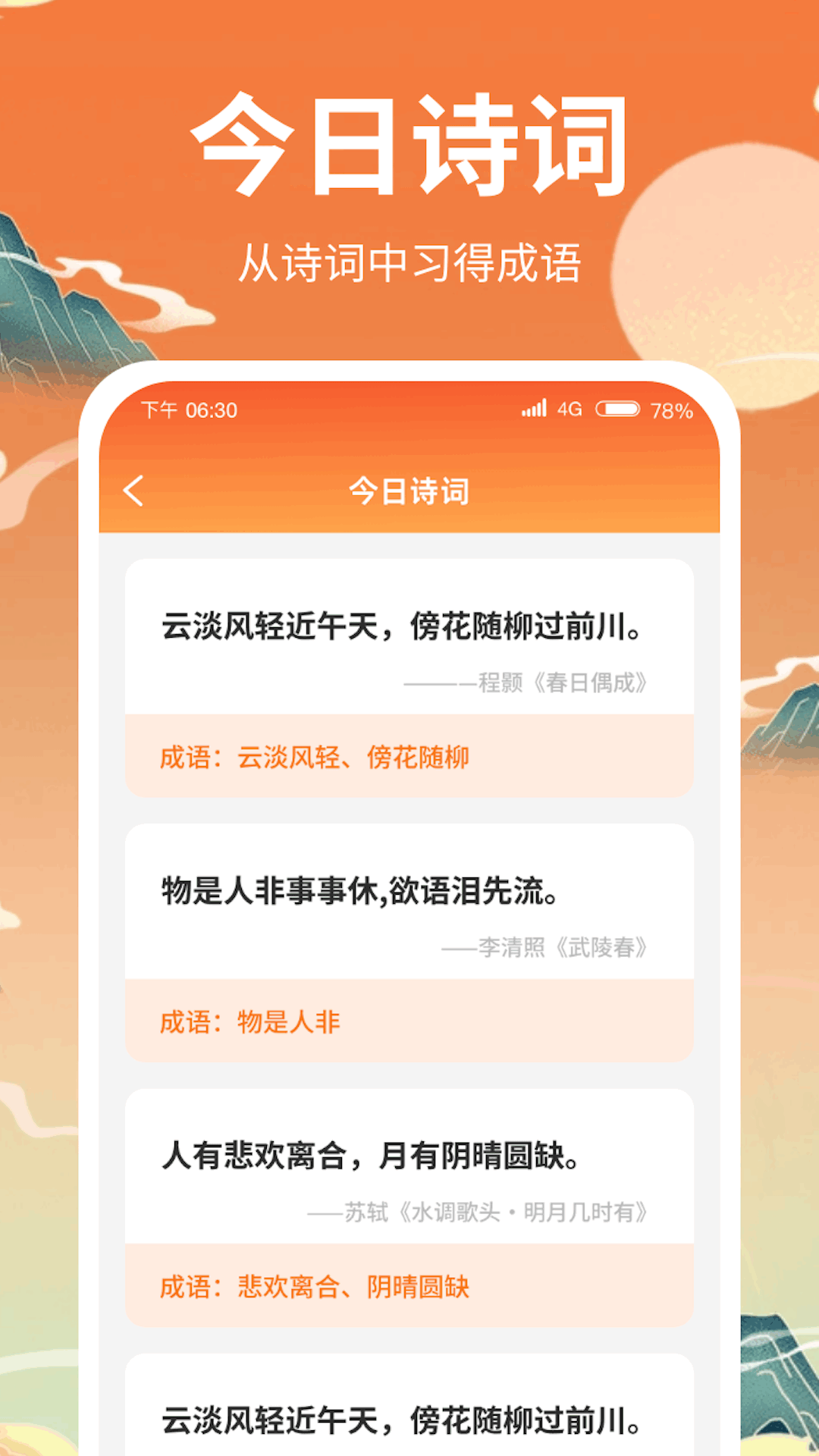 成语骑士里有海量的成语和诗词,在丰富的成语题库里进行成语诗词猜题和学习成语等,涵盖各种等级的成语模式,让你在娱乐中掌握成语诗词知识,提高学习效率。