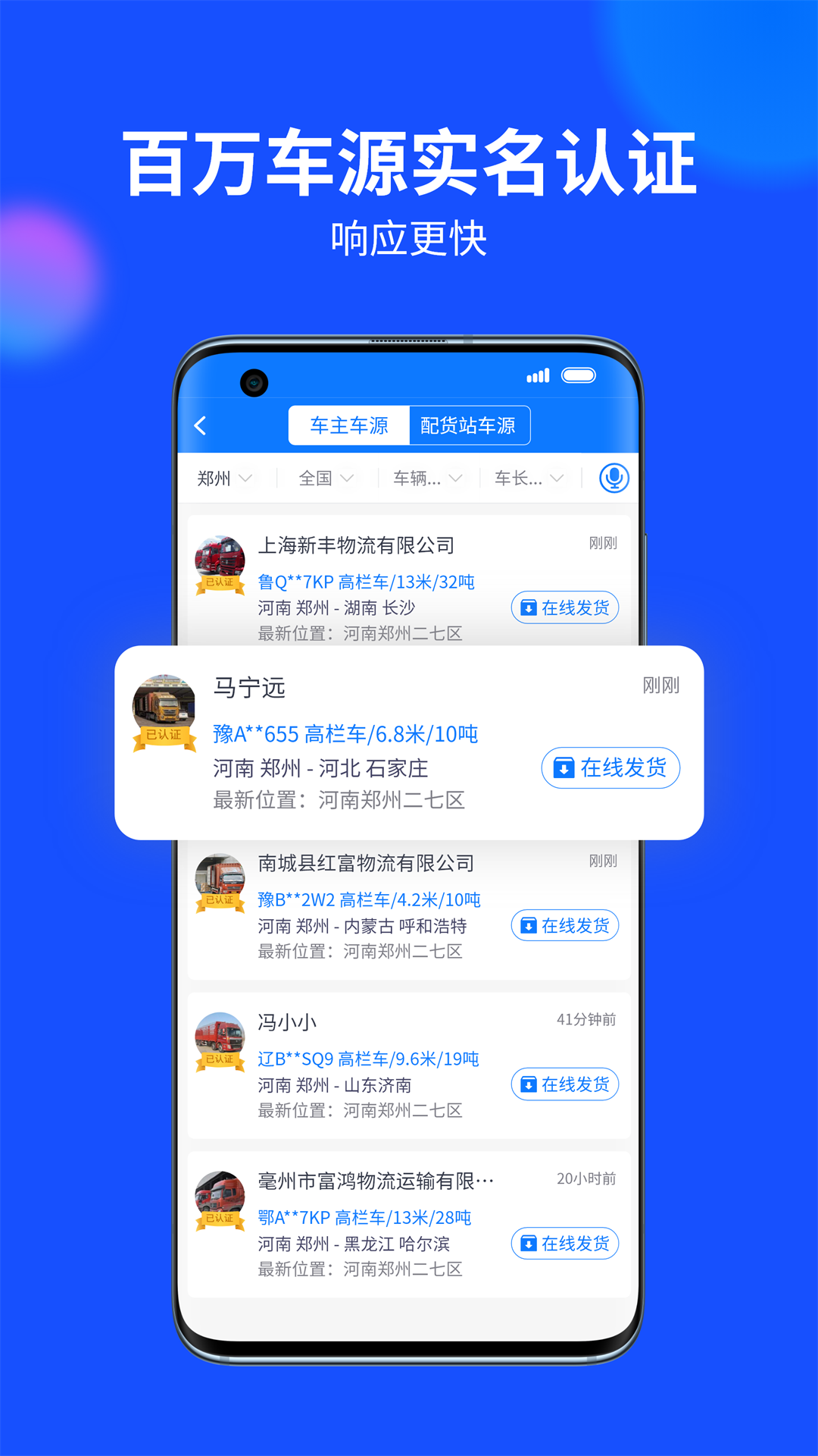 √ 只需轻松在线一键发布货源,就会有百万物流司机实时接单响应;