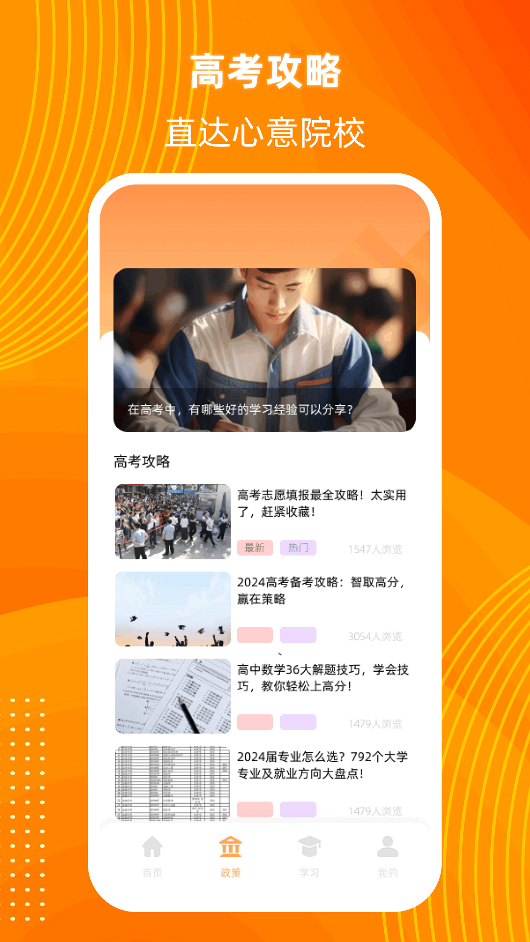 在这里,您能够快速查询考试分数,便捷知晓各行业薪资情况,查看国内大学的排名信息。同时,应用为您提供详细的考试攻略,从而让您在备考过程中无忧无虑。此外,应用汇聚了最新的教育政策,能使您第一时间掌握教育行业的动态信息。更值得一提的是,本应用具备自习室功能,可为您打造专注的学习氛围。