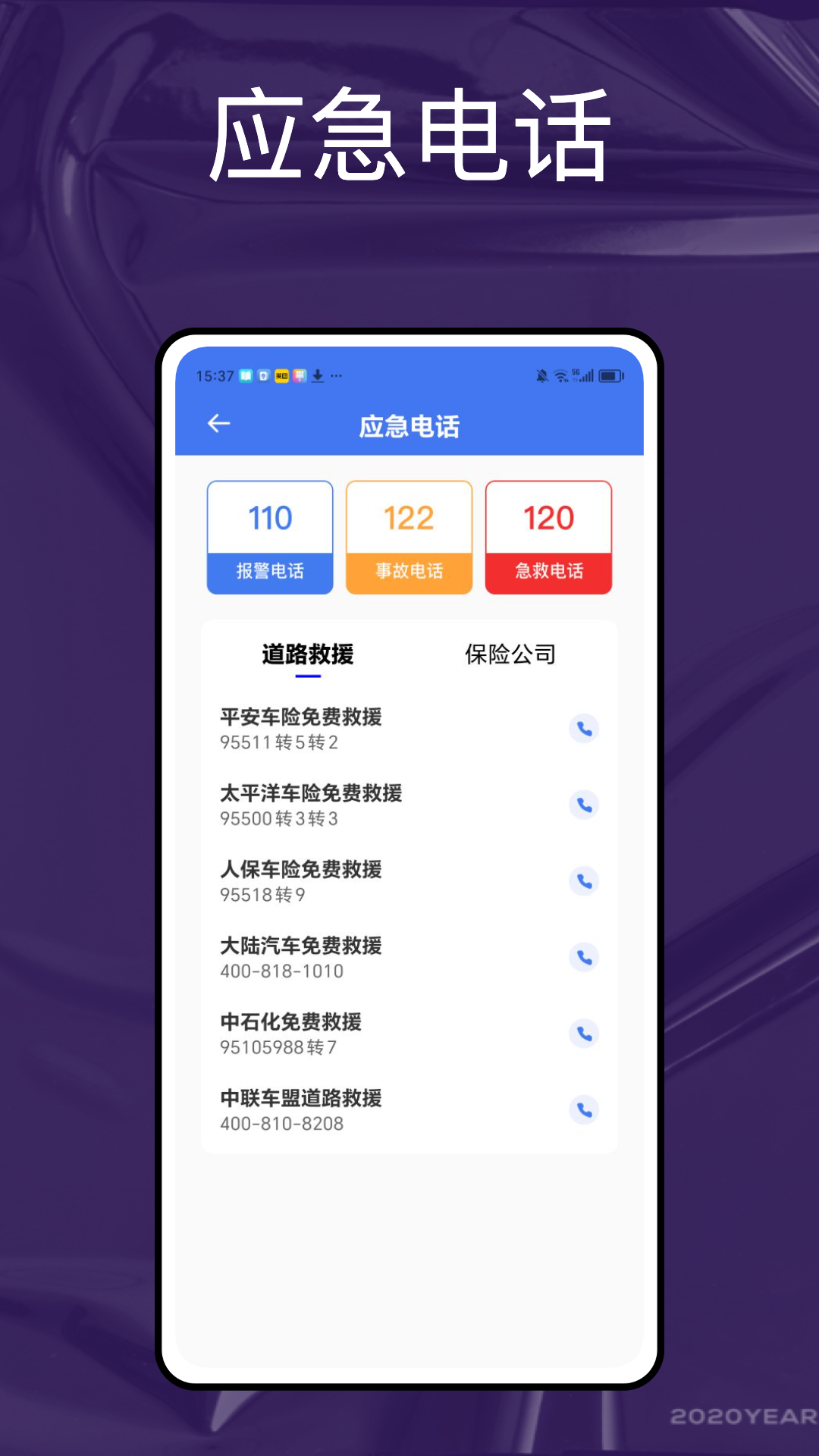 在应急电话汇总方面,该APP收集了各类紧急救援电话,在用户遭遇紧急状况时,可以迅速拨打求助电话。