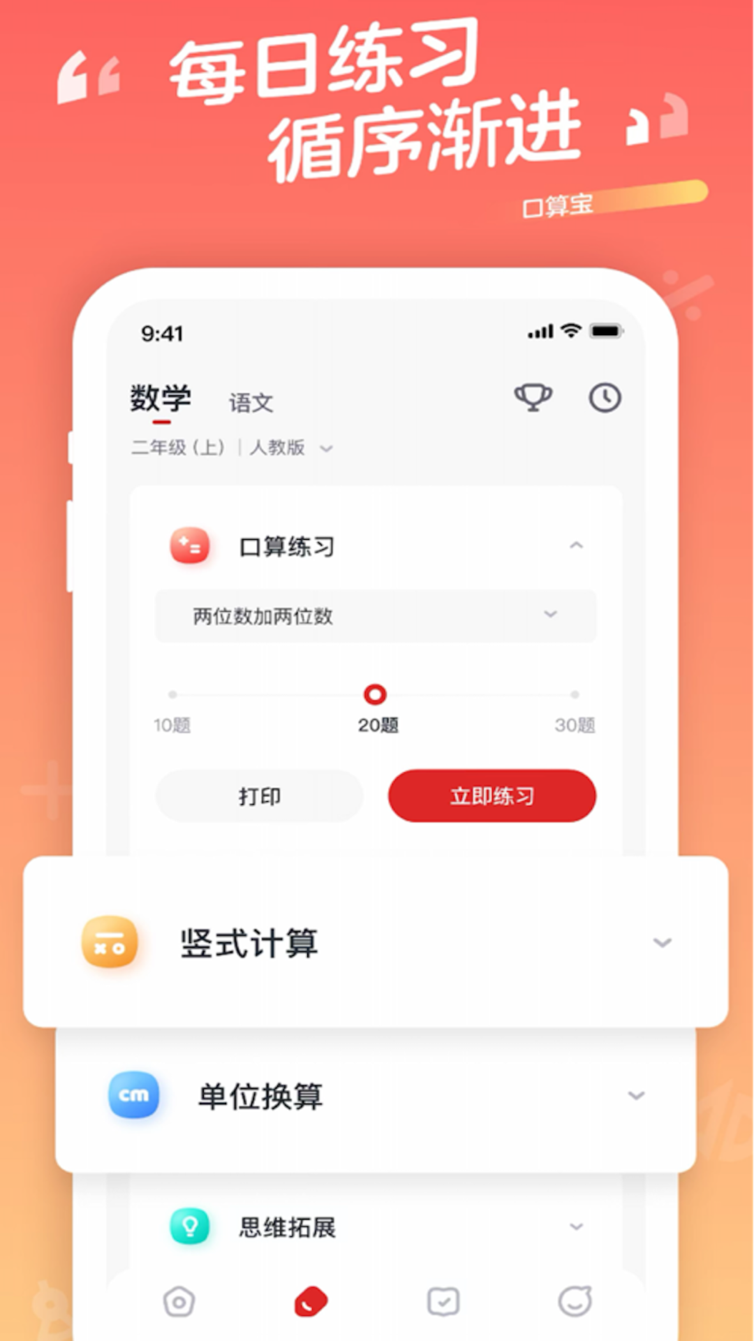 口算宝(原名题为拍拍口算)是一款致力于提升小学生口算能力的App。它运用AI图像智能识别技术,能够进行智能拍照检查,让口算检查变得既省时间又省力。并且,其口算练习题库紧密结合校园教材,各个学龄阶段的孩子都能适用,进行在线同步练习。